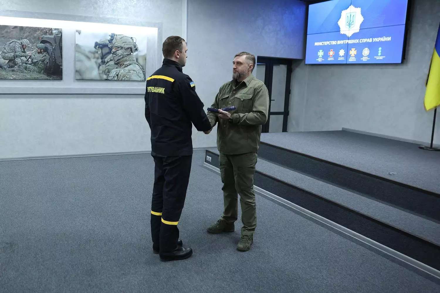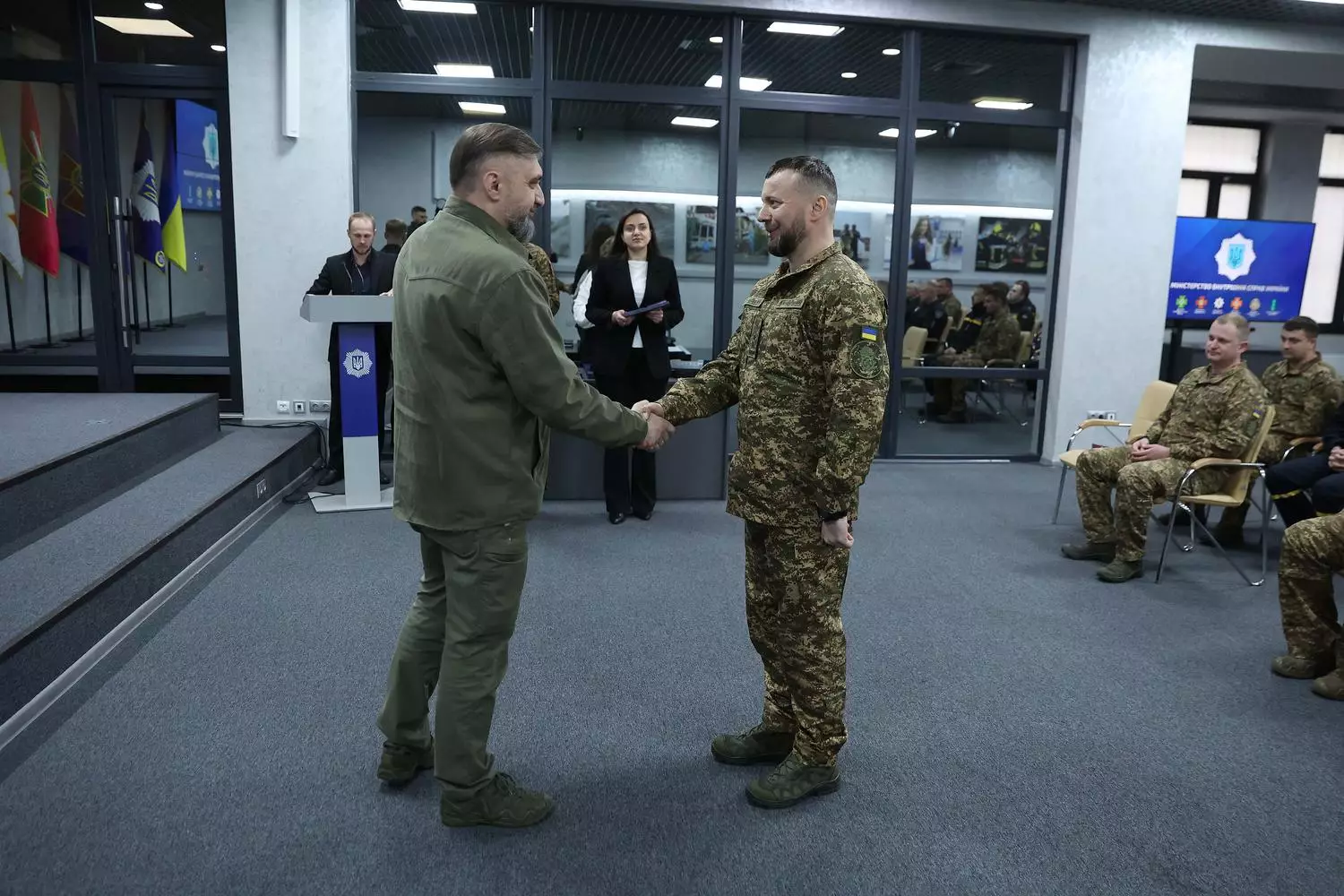 У Міністерстві внутрішніх справ України відбулася церемонія вручення відомчих відзнак та цінних подарунків військовослужбовцям Національної гвардії України, поліцейським Національної поліції України та рятувальникам ДСНС. Захід відбувся за участю заступника Міністра внутрішніх справ України Сергія Науменка.