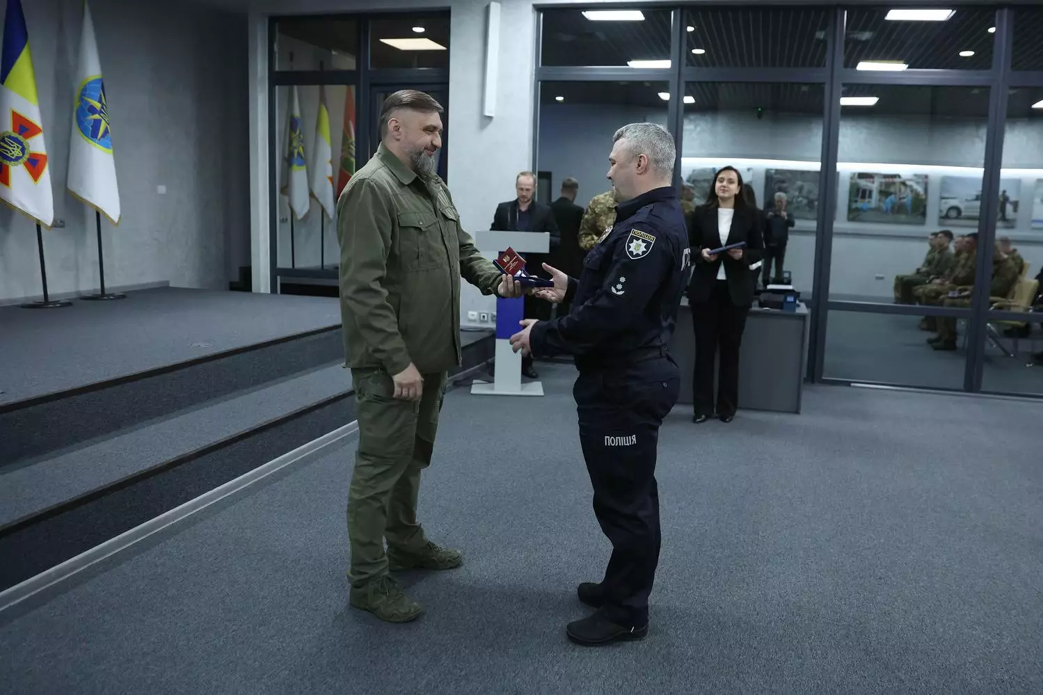 У межах церемонії нагородження за високі показники у службовій діяльності, особисту мужність і самовіддані дії, виявлені під час виконання службового обов’язку в умовах воєнного стану, відзначено нагрудними знаками «За відвагу в службі», «За відзнаку в службі», а також цінними подарунками відомства. Окрім того, старшому лейтенанту поліції Віталію Друзенку присвоєно спеціальне звання - капітан поліції.