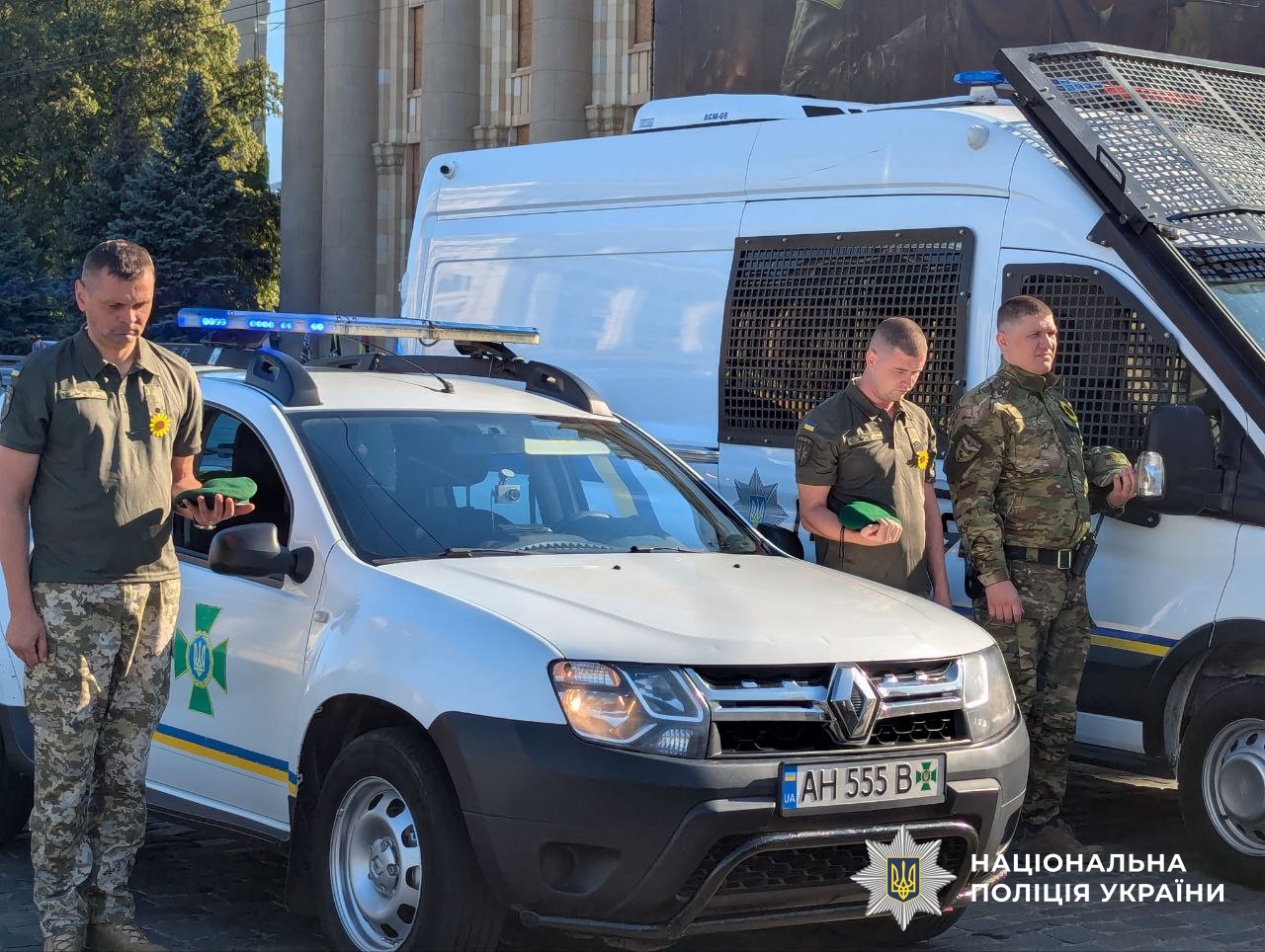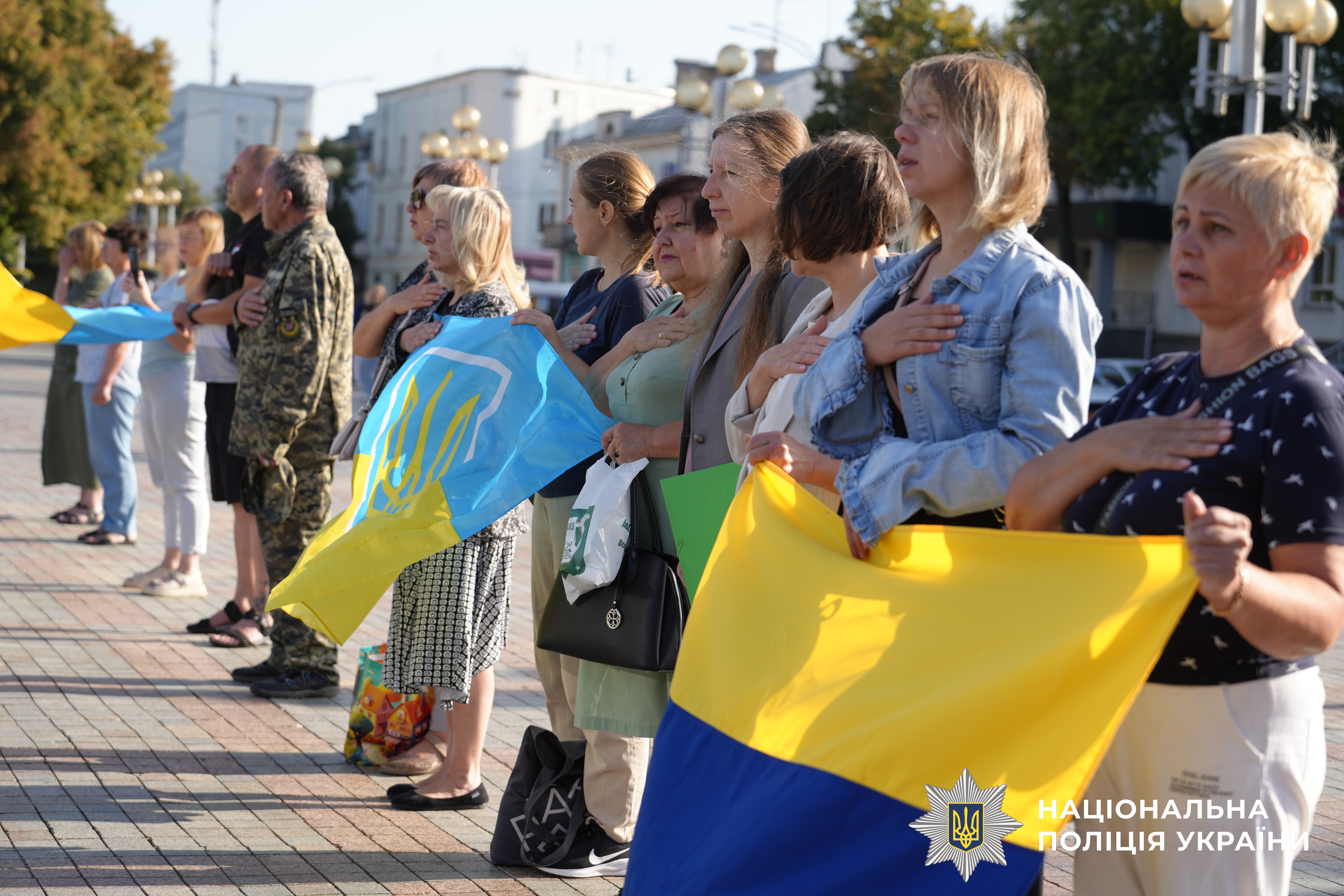 Правоохоронці вийшли на площі та разом із громадянами схилили голови у хвилині мовчання.