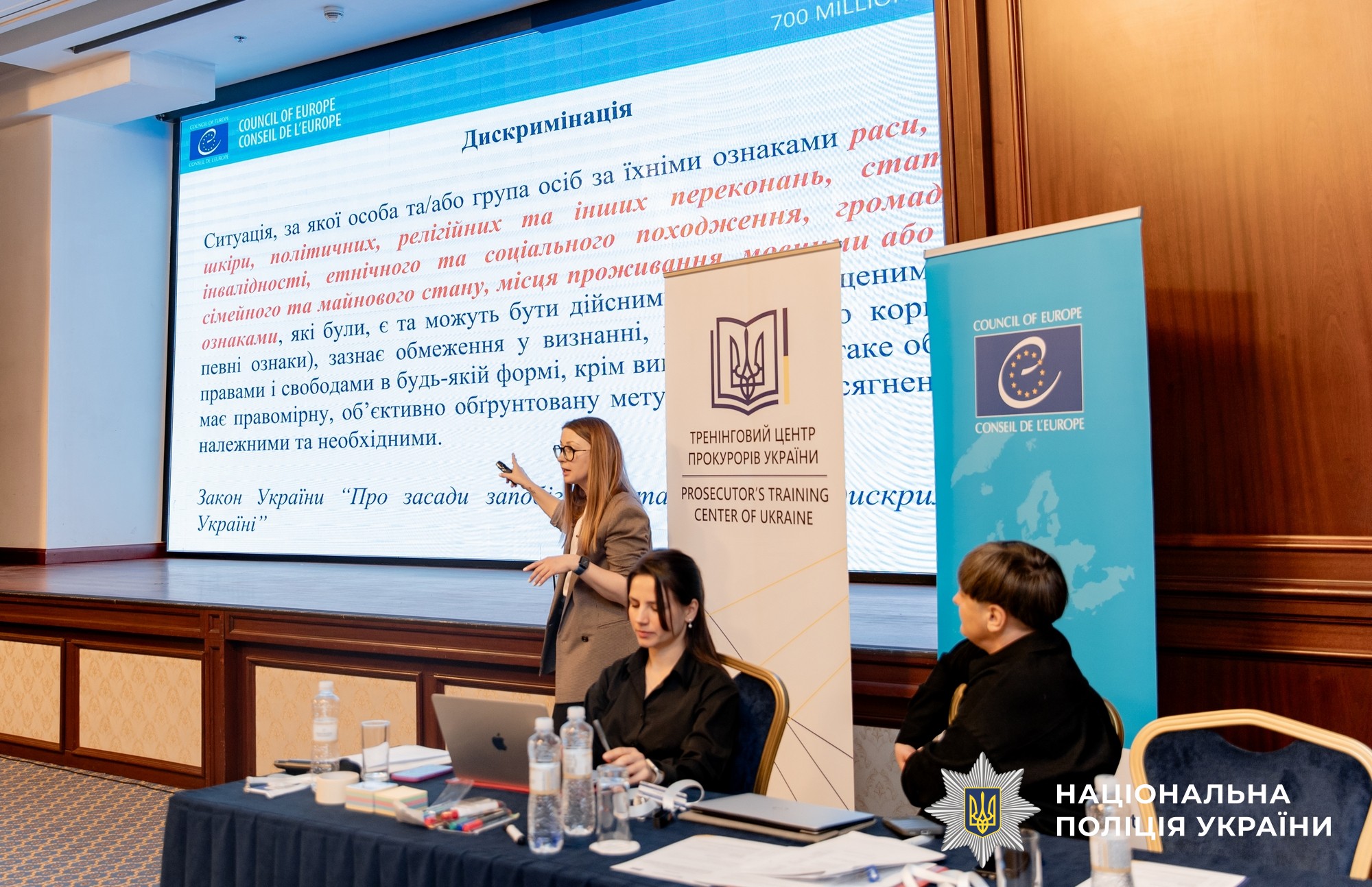 Тренерками заходу виступили експертки Ради Європи: експертка з прав людини, рівності та недискримінації, адвокаційниця, дослідниця, розробниця навчальних програм і тренерка у сфері прав людини, запобігання дискримінації та розбудови спроможності державного сектору Ірина Федорович; адвокатка, експертка у справах, пов’язаних із дискримінацією ЛГБТКІ+ людей та злочинами з мотиву нетерпимості, Оксана Гузь; кандидатка юридичних наук, доцентка, адвокатка, експертка з питань недискримінації та прав людини Марина Коваленко.