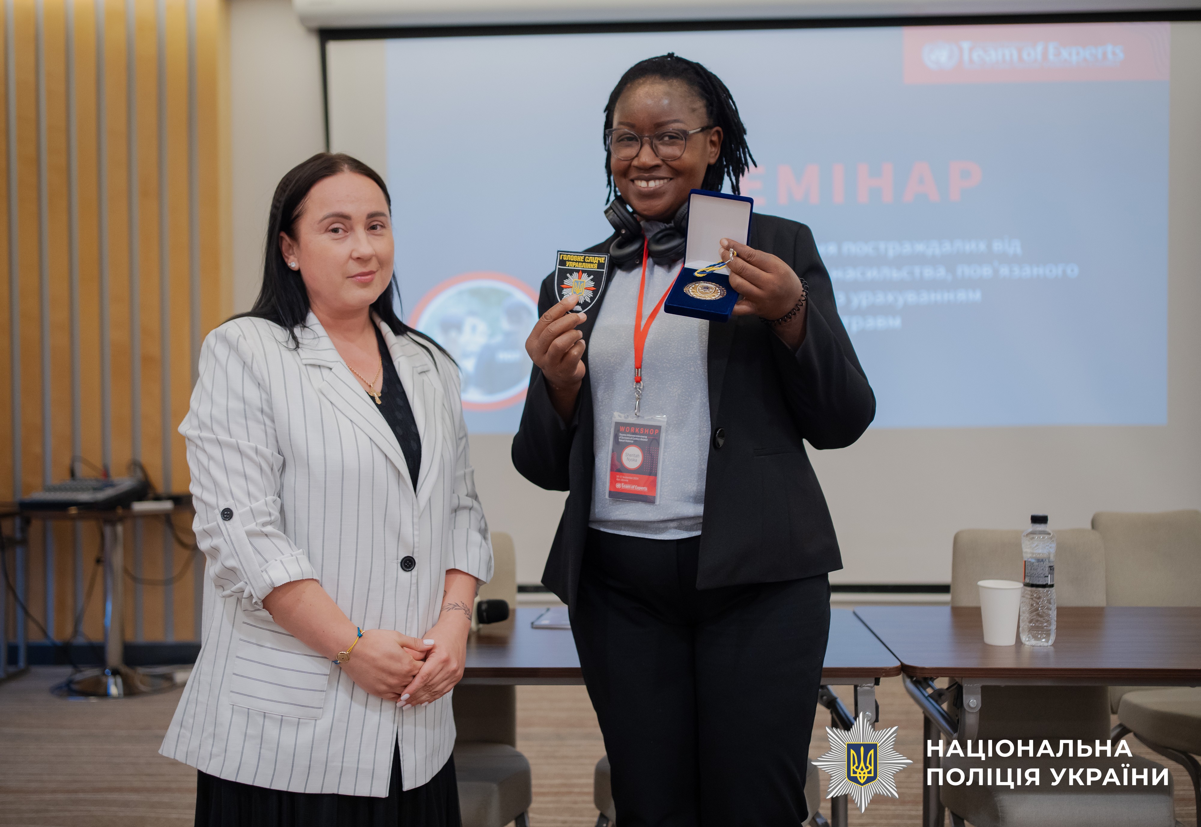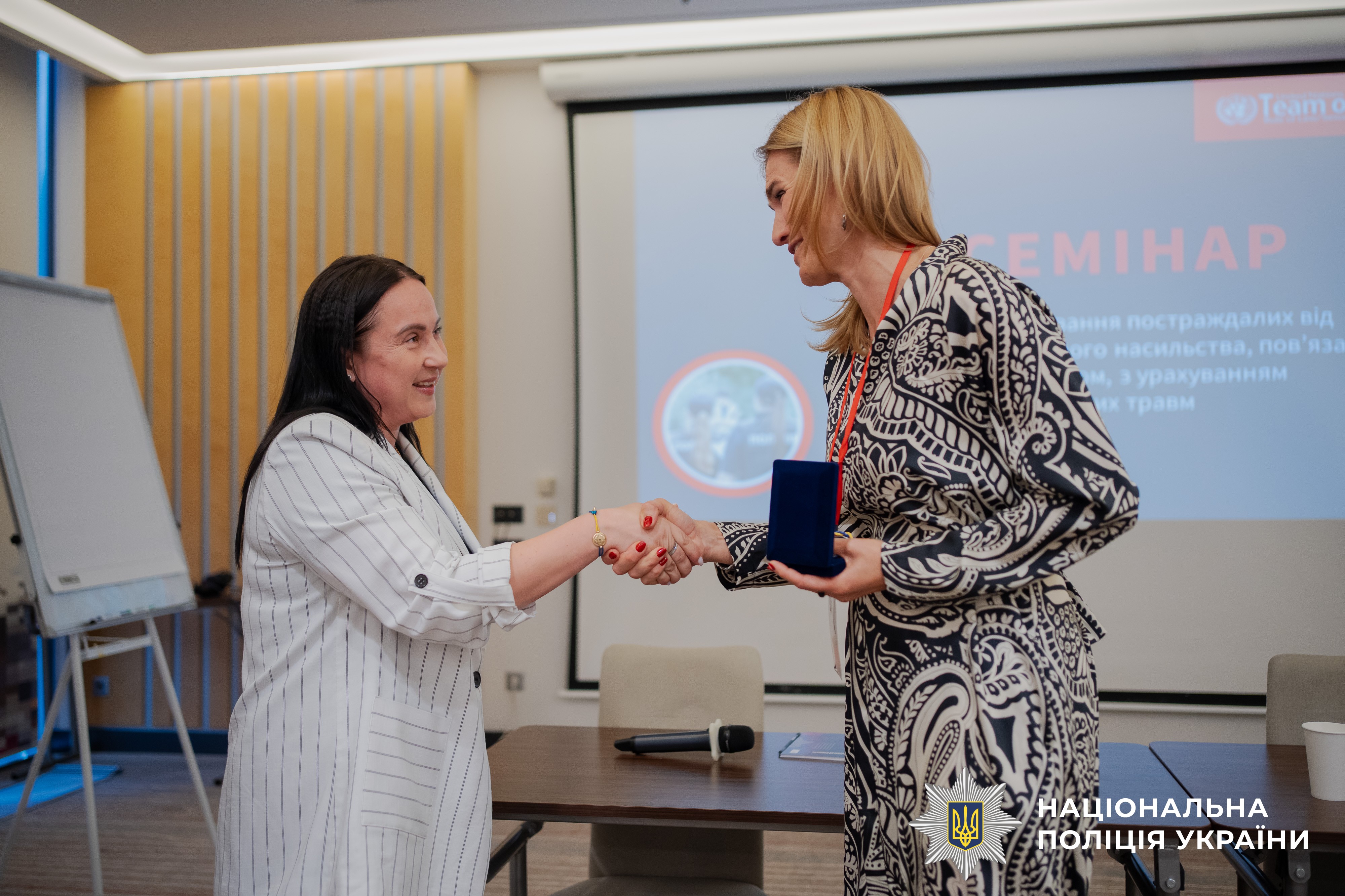 На завершення семінару, начальник управління організації розслідування злочинів, учинених в умовах збройного конфлікту Головного слідчого управління Національної поліції України Христина Подиряко подякувала за постійну підтримку представникам групи експертів ООН з верховенства права та сексуального насильства під час конфлікту: