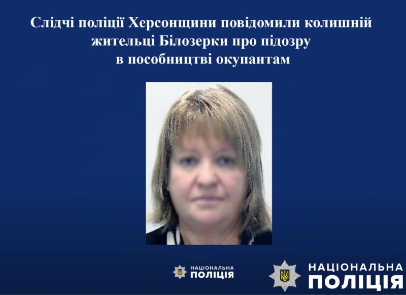 Слідчі поліції Херсонщини повідомили колишній жительці Білозерки про підозру в пособництві окупантам