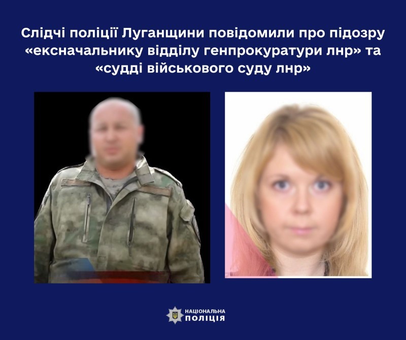 Слідчі поліції Луганщини повідомили про підозру «ексначальнику відділу генпрокуратури лнр» та «судді військового суду лнр»