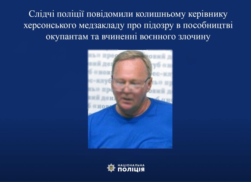 Слідчі поліції повідомили колишньому керівнику херсонського медзакладу про підозру в пособництві окупантам та вчиненні воєнного злочину