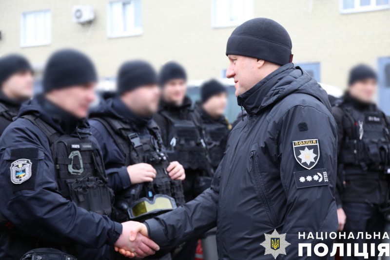 Керівник поліції Києва Дмитро Шумейко особисто перевірив готовність поліцейських до несення служби та побажав спецпризначенцям успішного виконання поставлених завдань, підтримувати й берегти один одного та повернутися додому живими та неушкодженими.