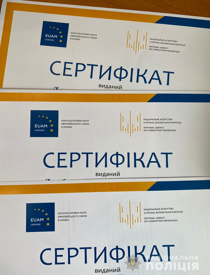 З метою вдосконалення теоретичних знань уповноважених підрозділів (уповноважених осіб) з питань запобігання та виявлення корупції в територіальних та міжрегіональних органів Національної поліції України, закладів та установ, що належать до сфери управління Національної поліції України, Управлінням запобігання корупції Національної поліції України спільно з представниками Національного агентства з питань запобігання корупції та представниками Консультативної місії Європейського Союзу організовано та проведено 6 семінарів-тренінгів з уповноваженими підрозділами (уповноваженими особами) з питань запобігання та виявлення корупції.