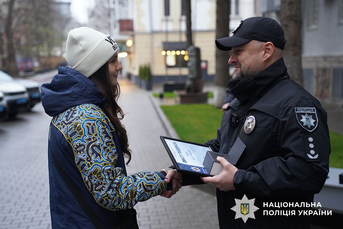 Начальник ГУНП в Тернопільській області Сергій Зюбаненко привітав Каріну з високими досягненнями.