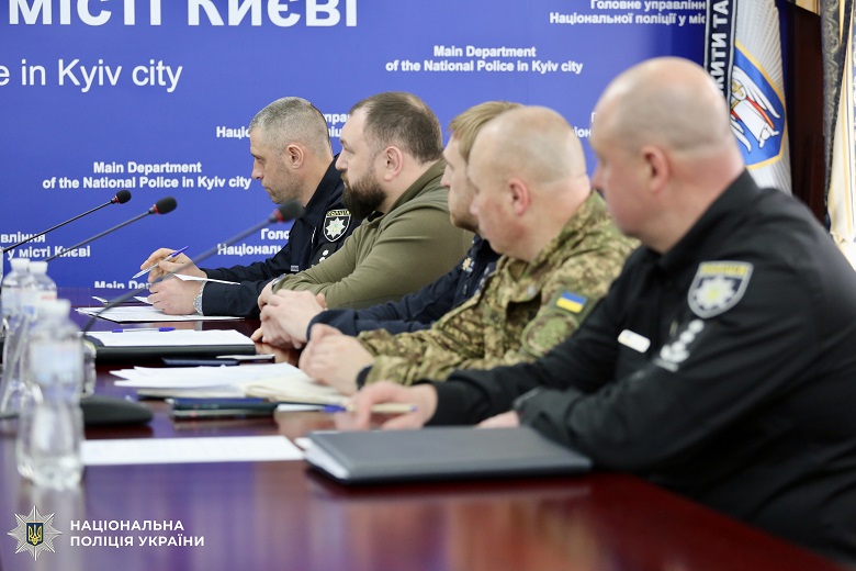 Сьогодні, 9 квітня, у главку поліції Києва пройшла міжвідомча нарада за участі заступника Голови Національної поліції Олександра Фацевича, начальника главку поліції Києва Дмитра Шумейка, представників Київської міської військової адміністрації, СБУ, прокуратури, Національної гвардії, ДСНС та Національної академії внутрішніх справ. Керівники відомств узгодили план спільних дій та порядок взаємодії.