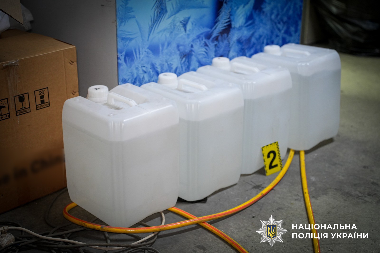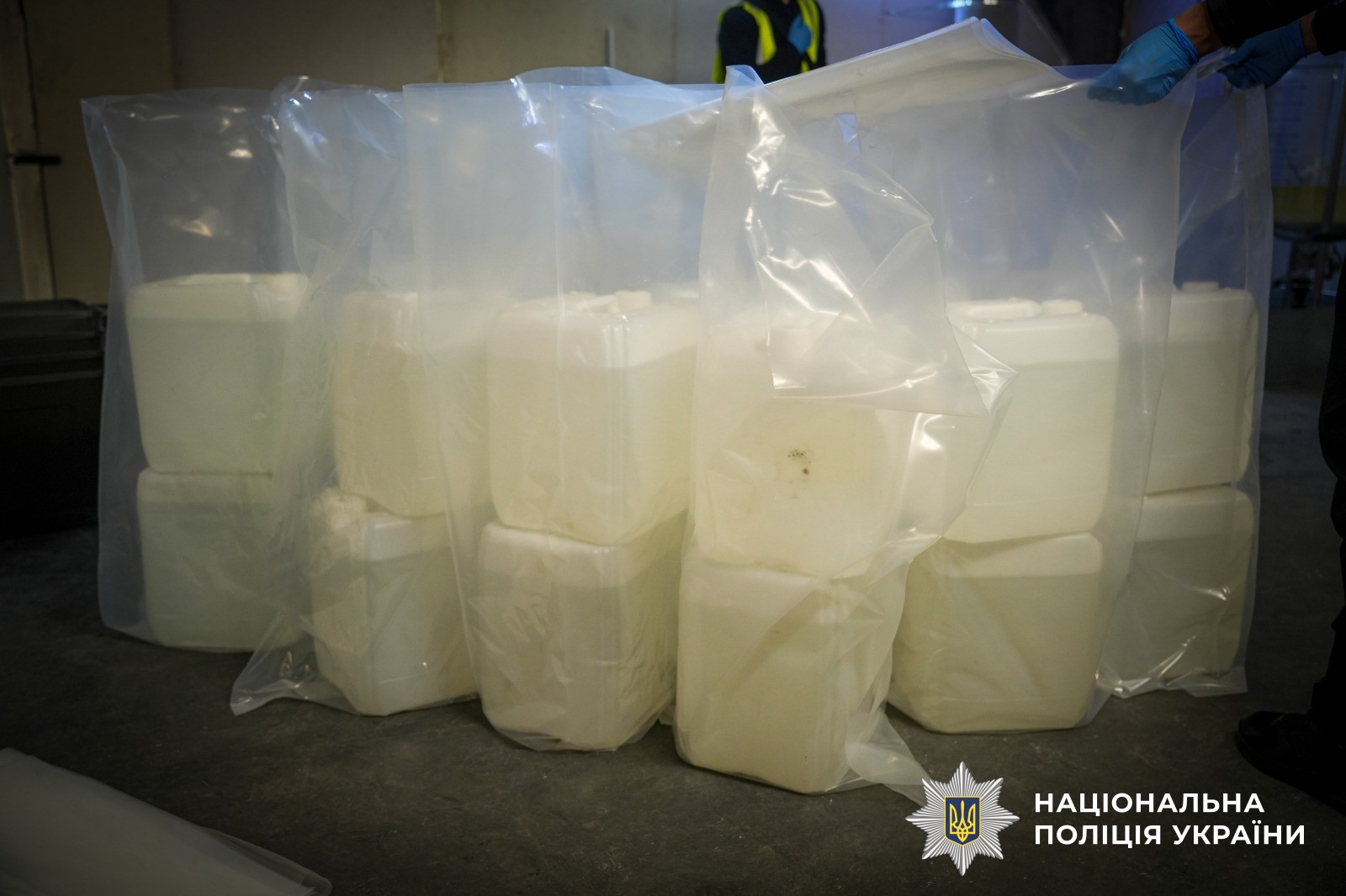 Під час обшуків поліцейські знешкодили дві нарколабораторії та три склади з прекурсорами, вилучили 44 одиниці вибухівки, 30 кг солей і понад п’ять тисяч літрів прекурсорів.