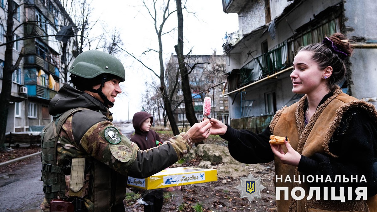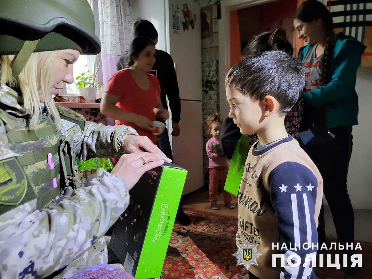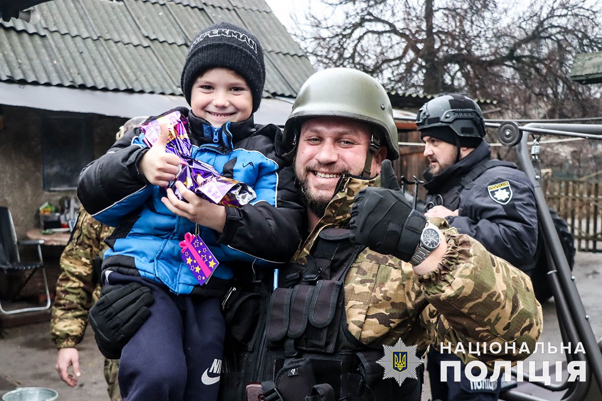Напередодні свята ювенальні поліцейські відвідали дітлахів на лінії вогню і тих, кого раніше евакуювали у більш безпечні місця регіону. Втішили й малечу, що пережила жахи російської окупації. Цього разу броньований транспорт вирушив під обстріли зі стратегічним вантажем – іграшками, цукерками, фруктами.