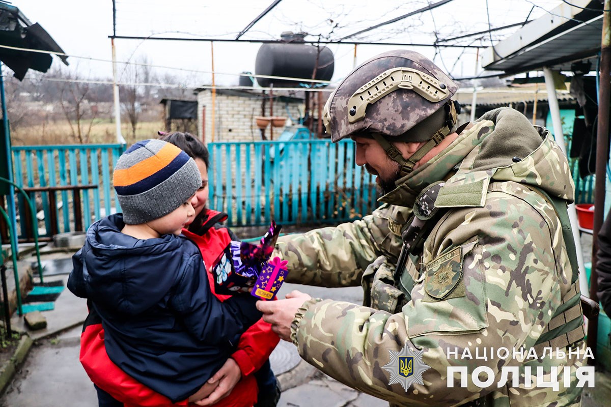Святий Миколай на лінії бойових дій: поліцейські Донеччини підтримали дітей, які зустрічають свято під російськими бомбами
