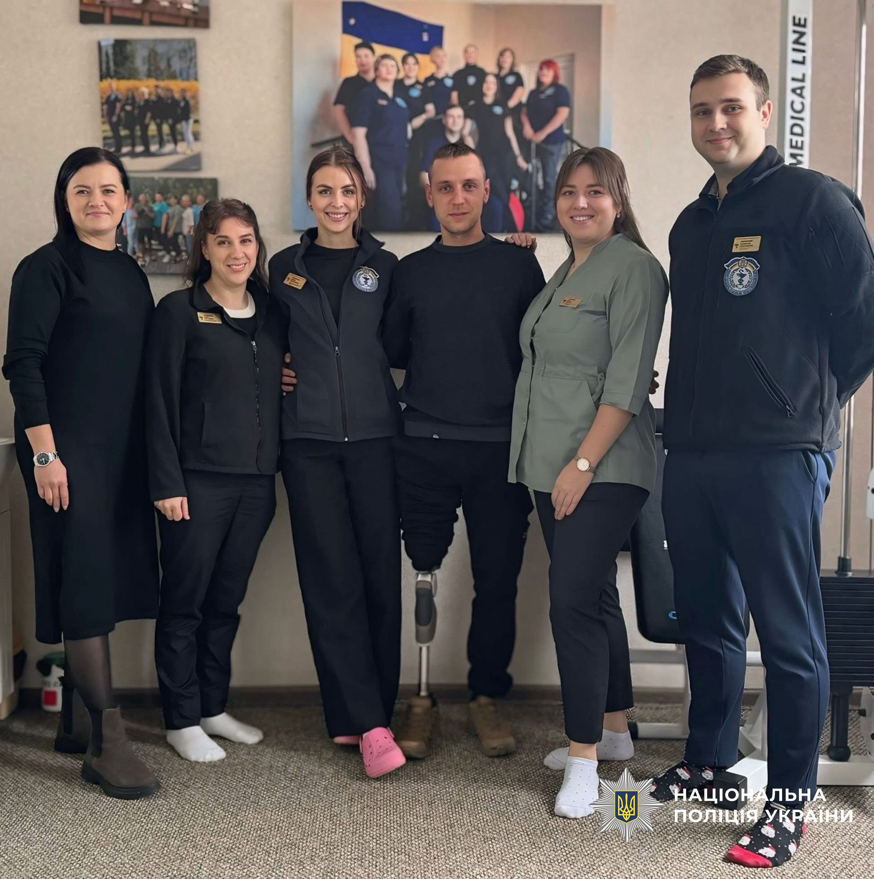 Після ампутації він переніс складні оперативні втручання, після чого були реабілітація та протезування. Завдяки злагодженій роботі мультидисциплінарної команди медиків відомчої медустанови МВС по Чернігівській області Євгеній зміг стати на протез та відновити фізичну форму. Успішне протезування та реабілітація стали ключовим кроком для його повернення до активного життя.