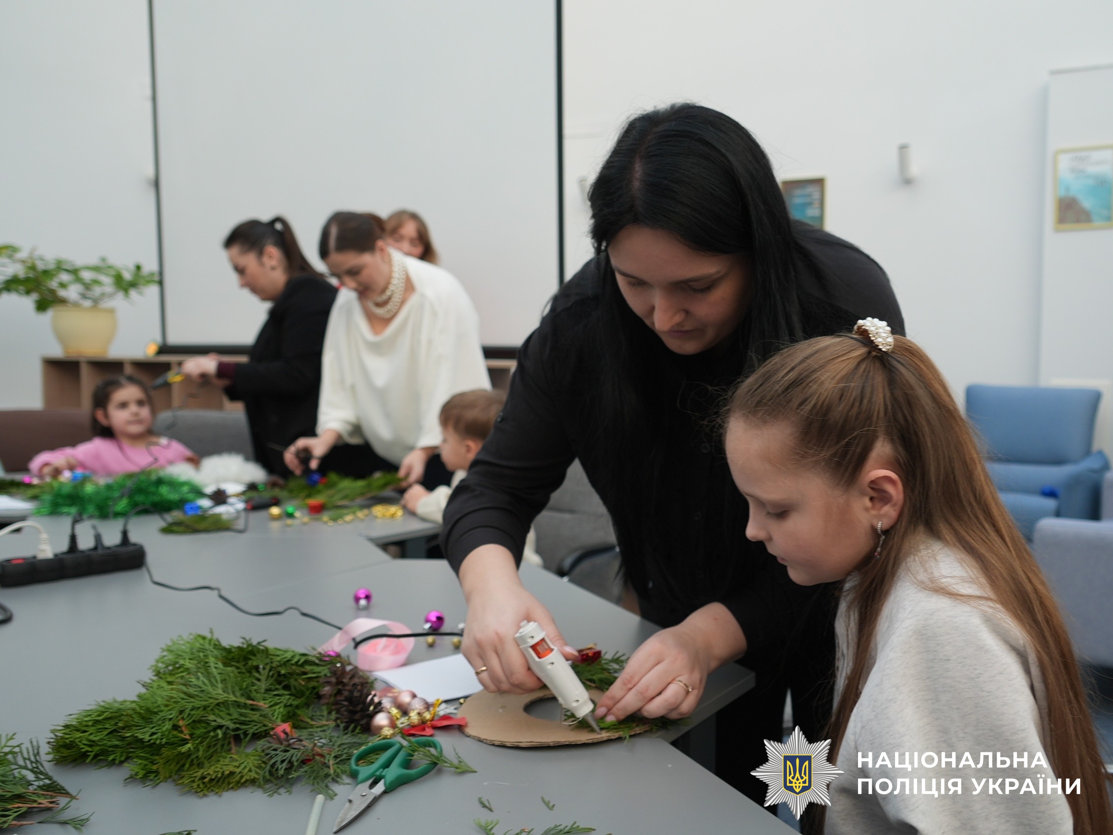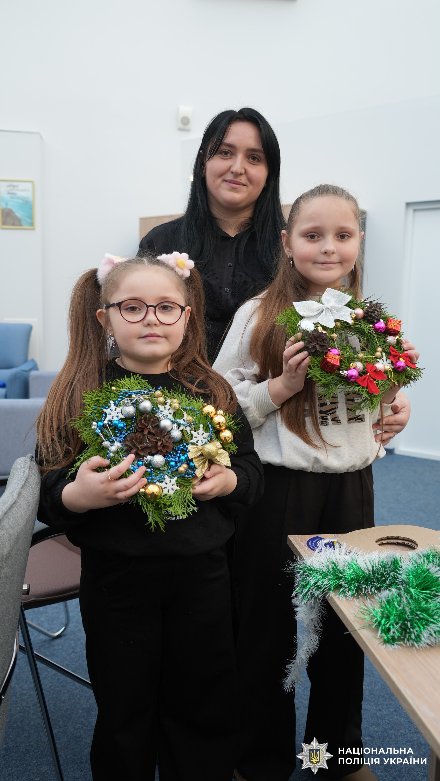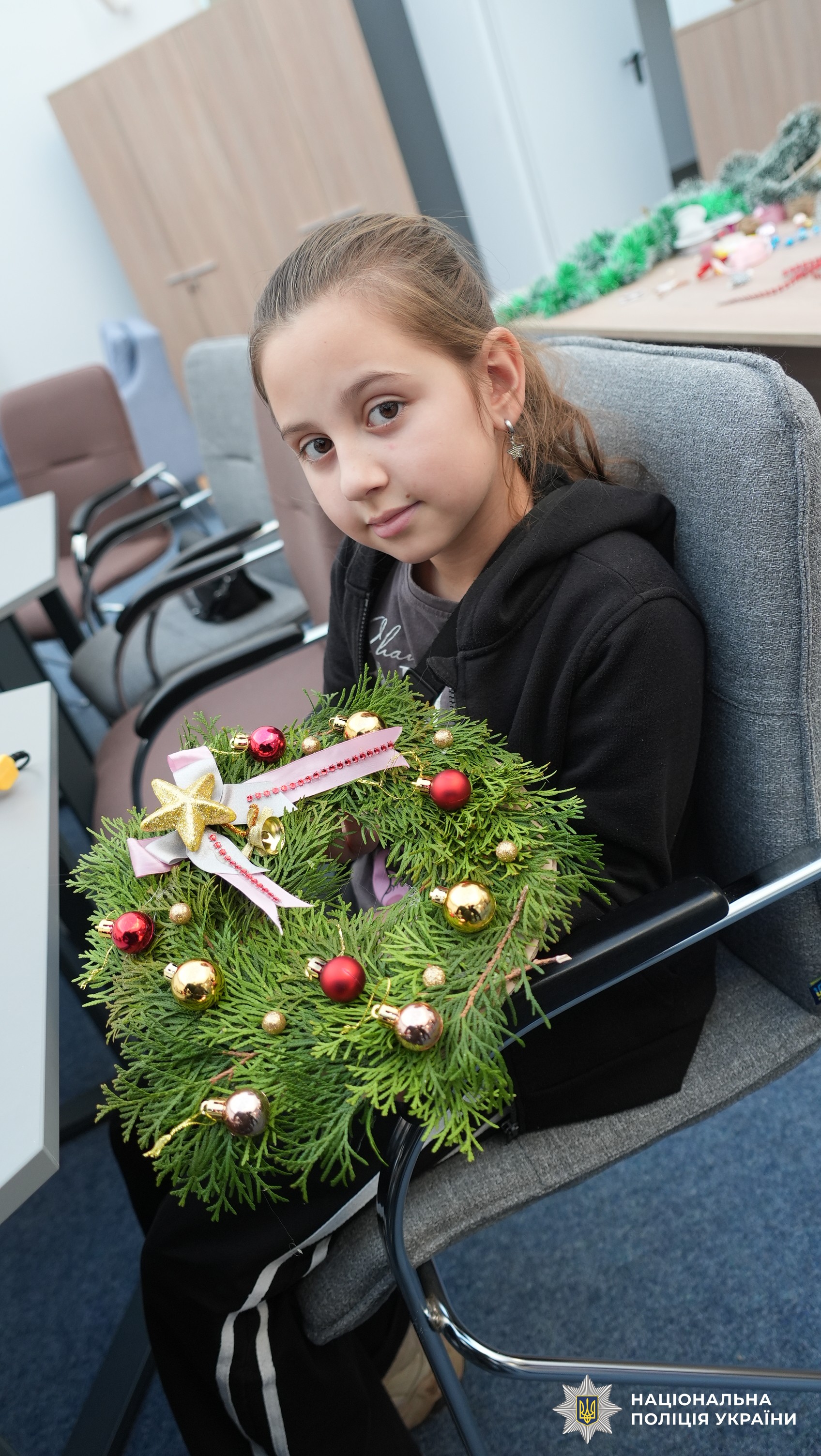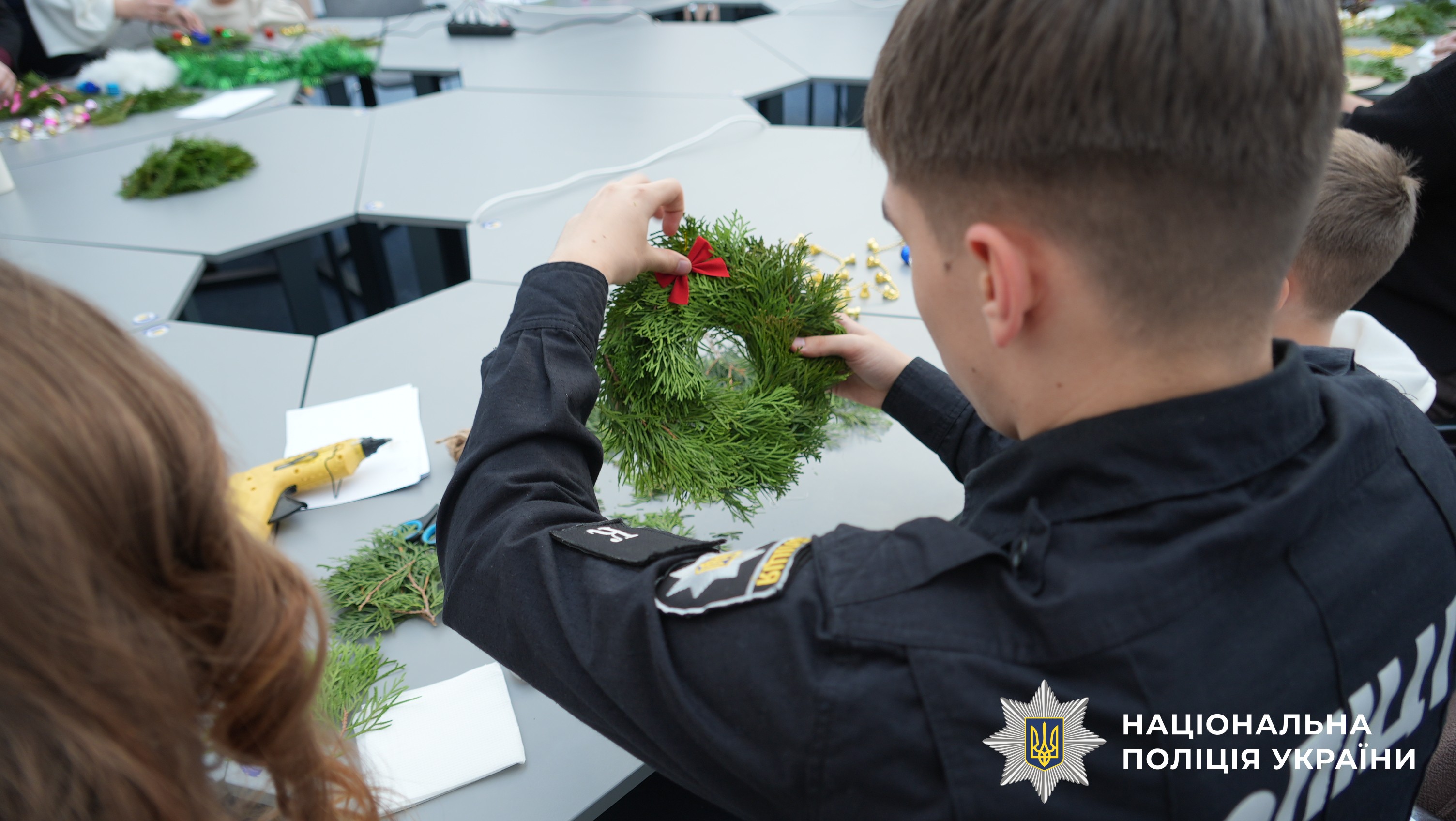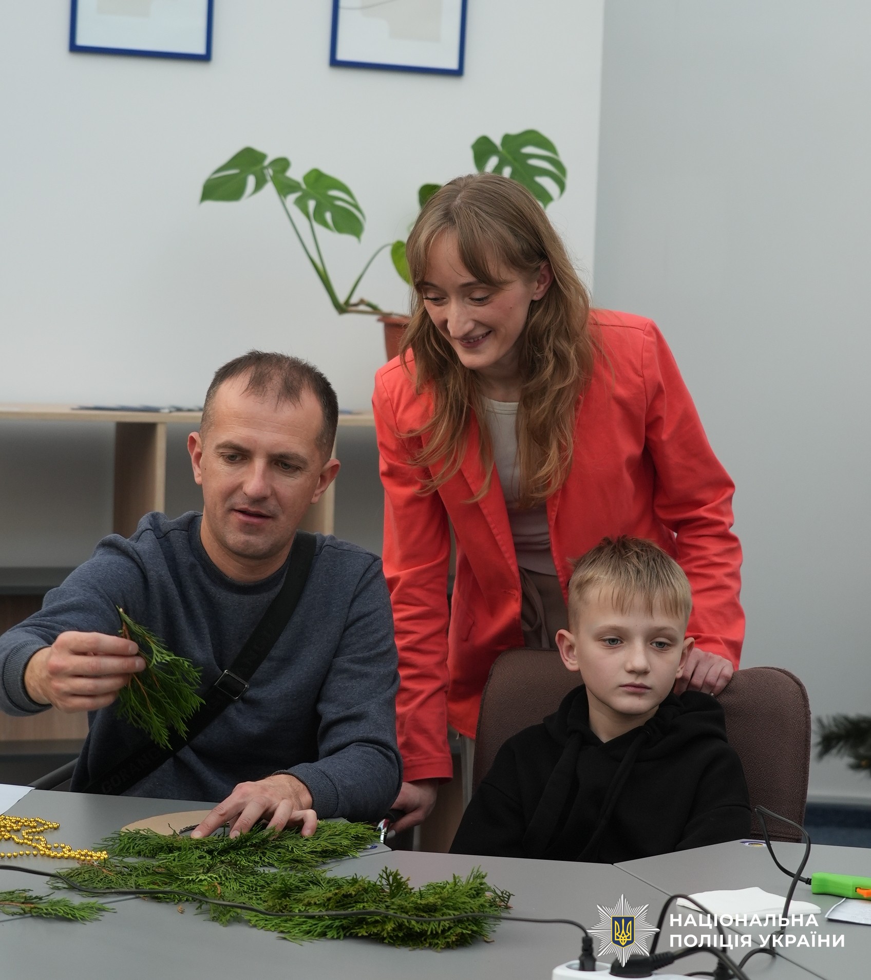 «Різдвяний віночок втілює надію, вічне життя, захист та радість. Це символ світла та родинного тепла. Це більше, ніж просто композиція з гілочок та іграшок, адже навіть сам процес створення – підбір гілочок, шишок, стрічок – є своєрідною медитацією, яка дозволяє вкласти любов та енергію, заряджаючи виріб», – зазначив начальник відділу психологічного забезпечення Управління кадрового забезпечення поліції Львівщини Олександр Ковбич.