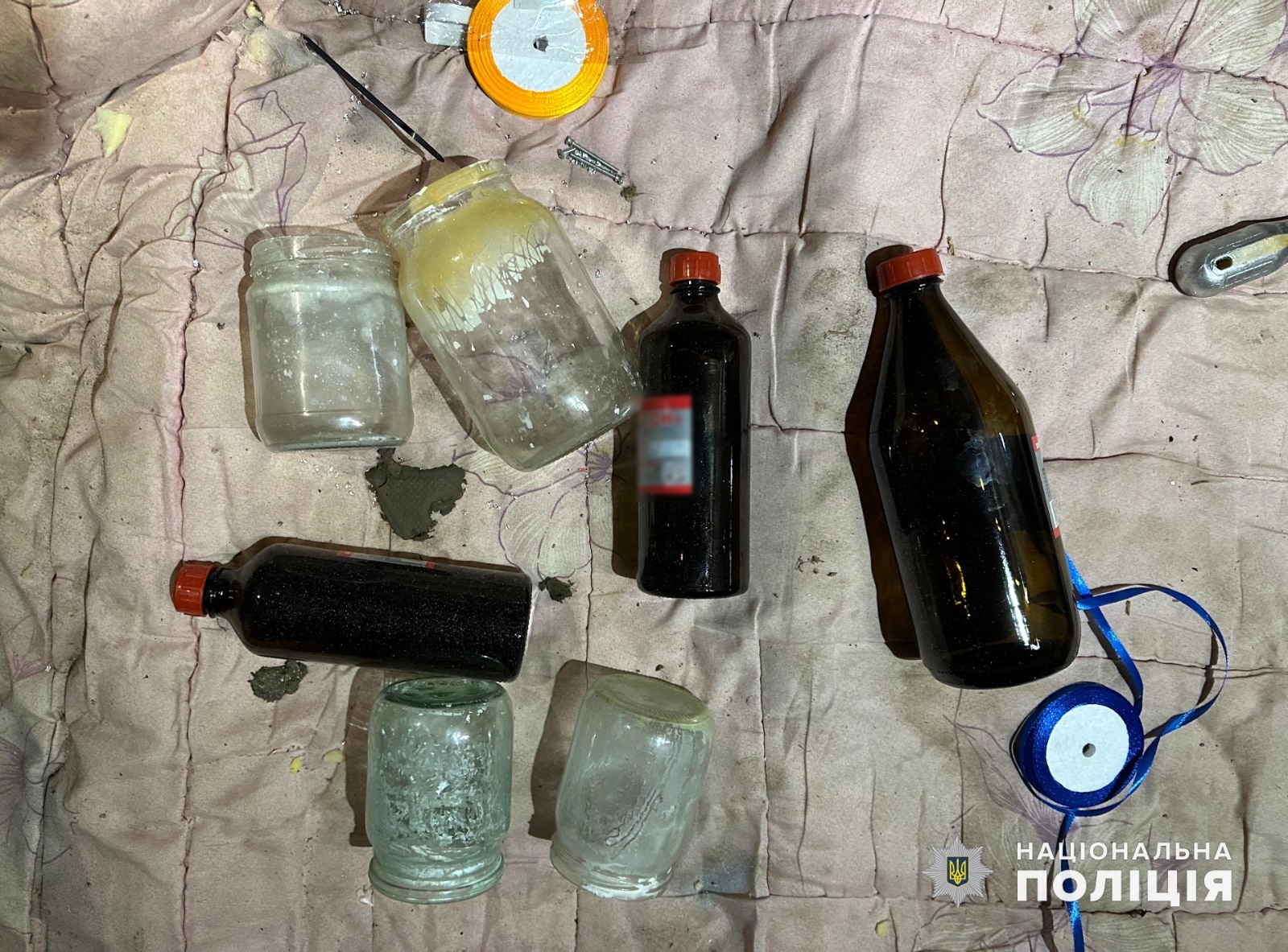- лабораторне обладнання призначене для виготовлення наркотиків (скляні колби, банки, зіп-пакети);