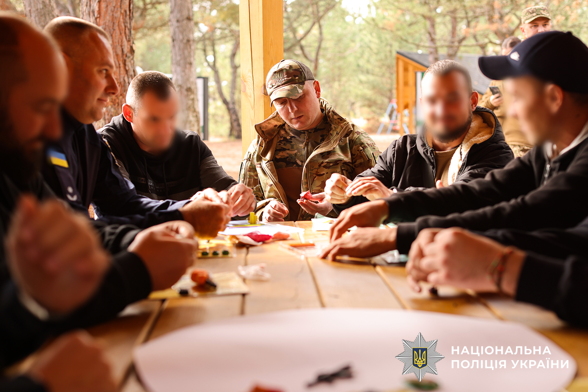 Поліцейські психологи, в рамках проєкту «Пункт психологічних практик» та з нагоди відзначення Всесвітнього дня психічного здоров’я, спільно з колегами із ДСНС, Національної гвардії, фахівцем сектору соціального захисту та супроводу постраждалих та членів їх сімей ДУ «Територіальне медичне об'єднання МВС України по Миколаївській області» та кінологів обласного главку поліції, посеред лісу організували майстерклас для бійців-правоохоронців.