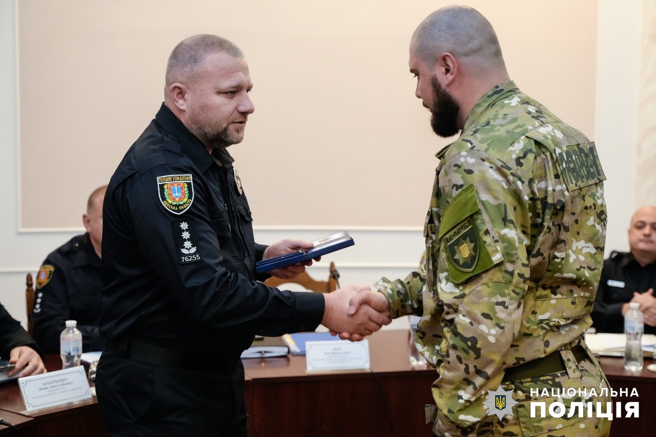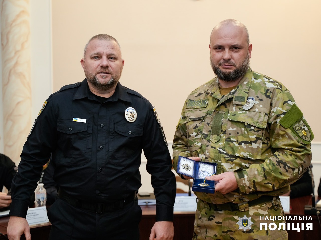 Начальник Головного управління Національної поліції в Одеській області Іван Жук подякував Денису та Олегу за мужність, проявлену під час виконання бойових завдань, та вручив нагрудні «Знаки Пошани».