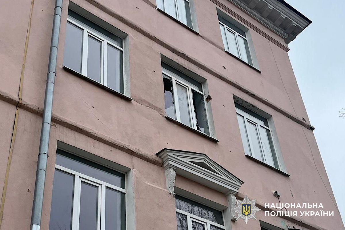 Нікопольщина. Впродовж минулої доби окупанти атакували чотири громади району - Нікополь, Марганець, села Червоногригорівської, Марганецької та Покровської сільської громади. Близько 8-ї ранку російські війська скерували БпЛА на один з навчальних закладів в райцентрі. З місця події до лікарні було госпіталізовано 54-річну жінку - у неї акубаротравма. Внаслідок удару пошкоджень зазнав ліцей, багатоквартирні будинки в епіцентрі вибуху. Крім того внаслідок артилерійських обстрілів та ударів ворожих FPV понівечено приватні оселі та господарські споруди. До чергових частин Нікопольського районного управління поліції продовжує надходити інформація про обстріли - наразі опрацьовано 60 повідомлень.