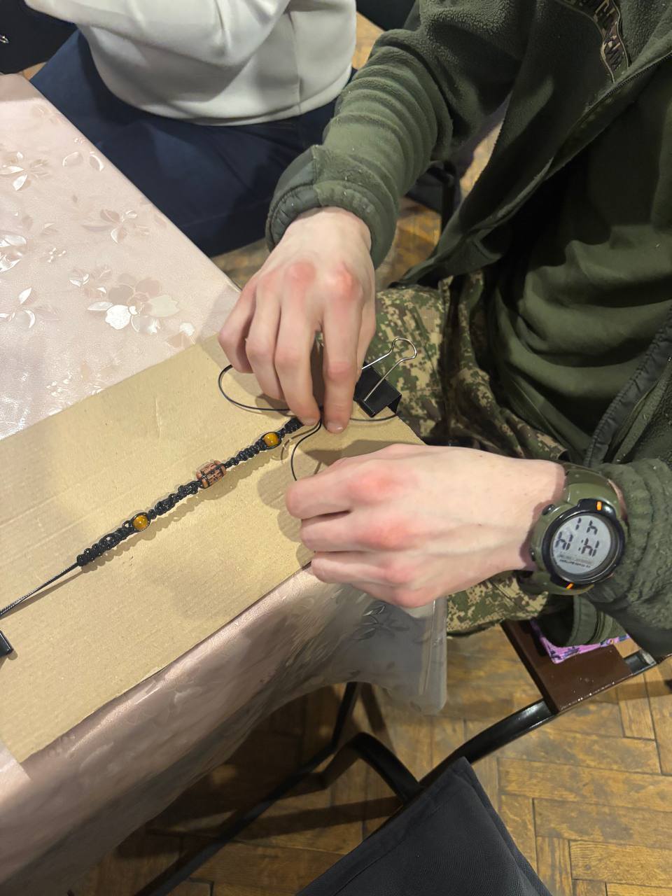 Кожен із присутніх власноруч виготовив браслет, обираючи кольори, символи та деталі оформлення. Для багатьох це стало можливістю спробувати нову справу, проявити творчість і поспілкуватися у дружньому колі.