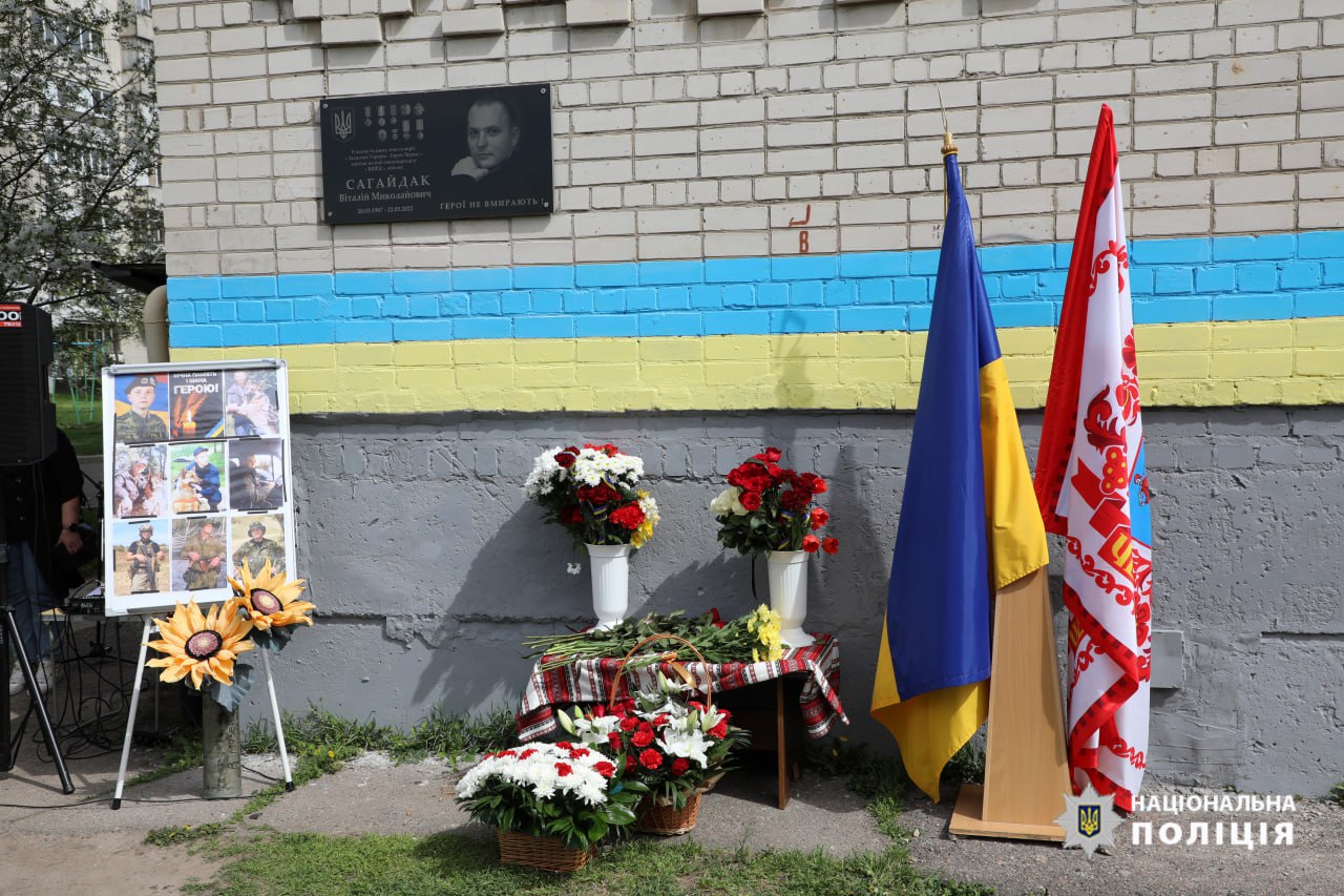 Меморіальну дошку, присвячену капітану поліції Сагайдаку Віталію Миколайовичу, встановили на стіні багатоповерхівки, де він виріс та проживав. Спецпризначенець трагічно загинув 22 травня 2022 року під час виконання службових обов'язків.