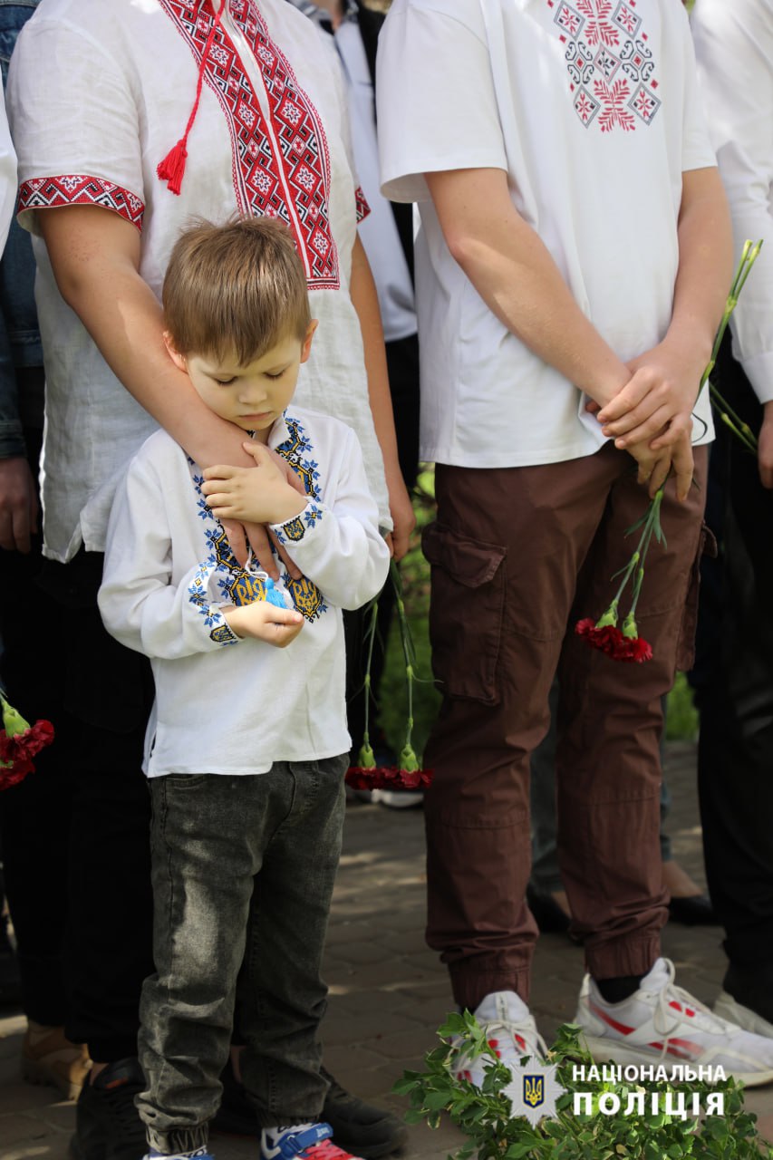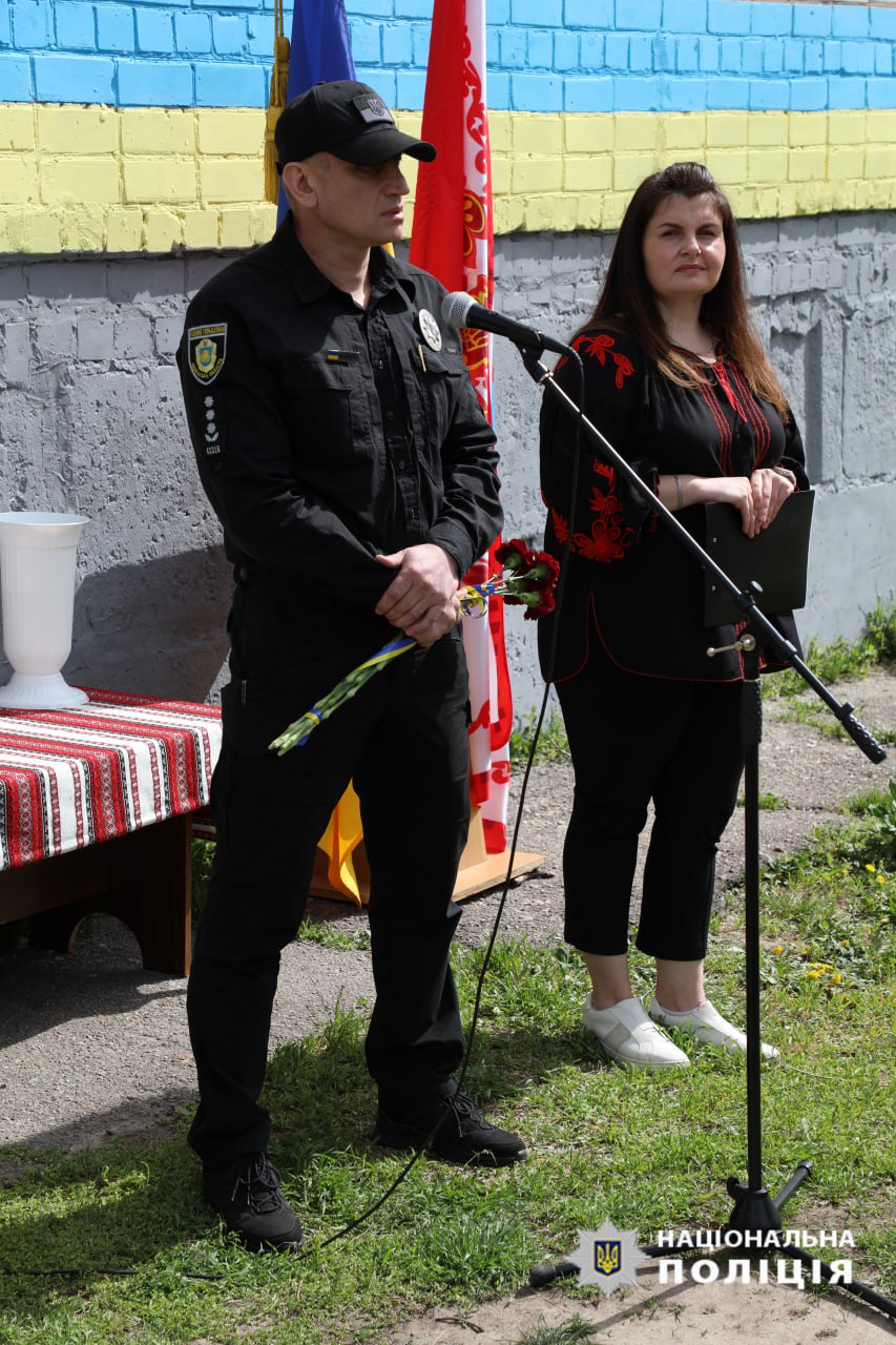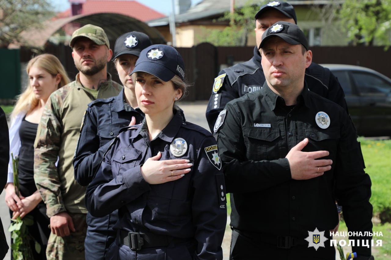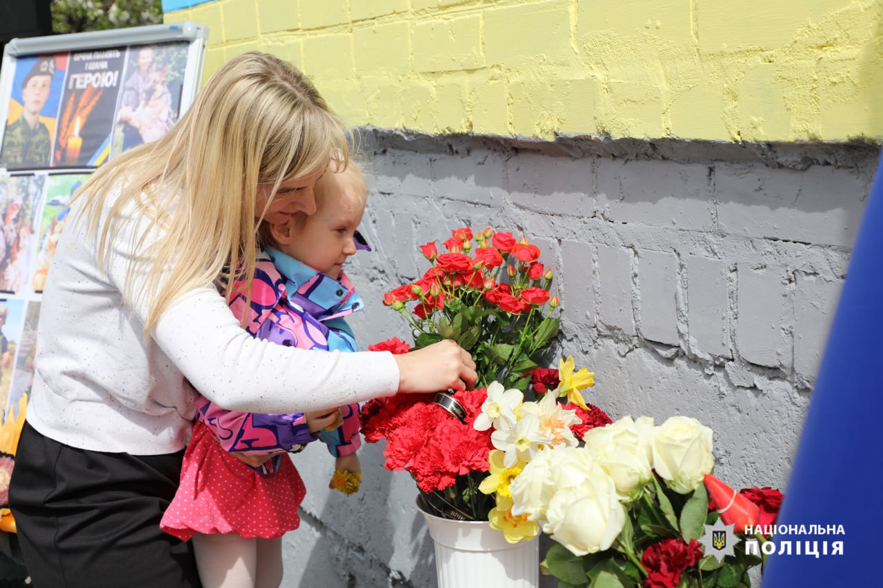 Присутні покладали квіти до меморіальної дошки та хвилиною мовчання вшанували загиблого поліцейського.
