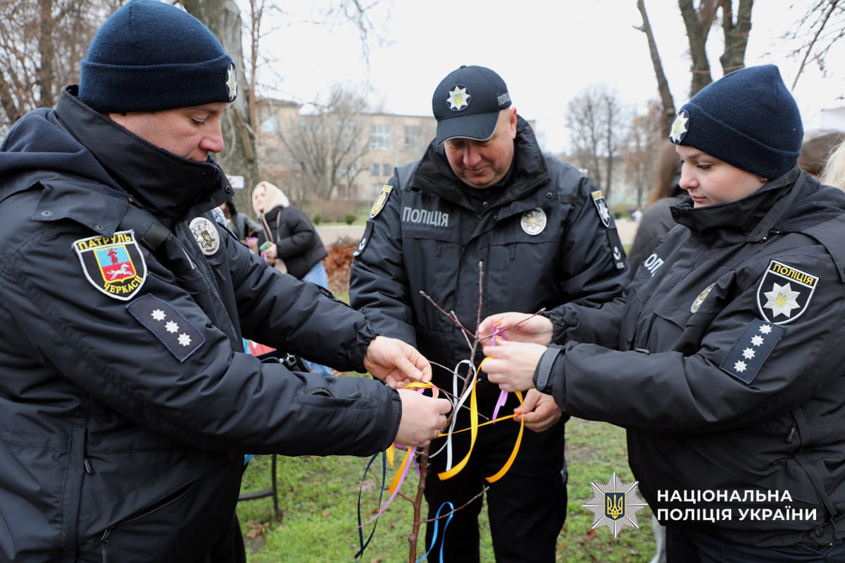 В рамках проведення Всеукраїнської акції «16 днів проти насильства» поліцейські взяли участь у заході організованим Громадською організацією «Десяте квітня» біля Черкаського національного університету імені Богдана Хмельницького у Черкасах. Поряд з «Червоною лавочкою» - символу протидії насильству - висаджено два «Дерева гідності» для привернення населення до проблеми подолання насильства.