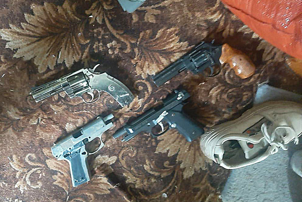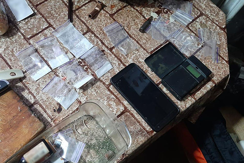 Під час санкціонованого обшуку квартири фігуранта правоохоронці виявили розфасовані пакетики з психотропами, а також чотири пістолета, серед яких один саморобний, набої, електронні ваги, мобільні телефони та пристрої для паління.