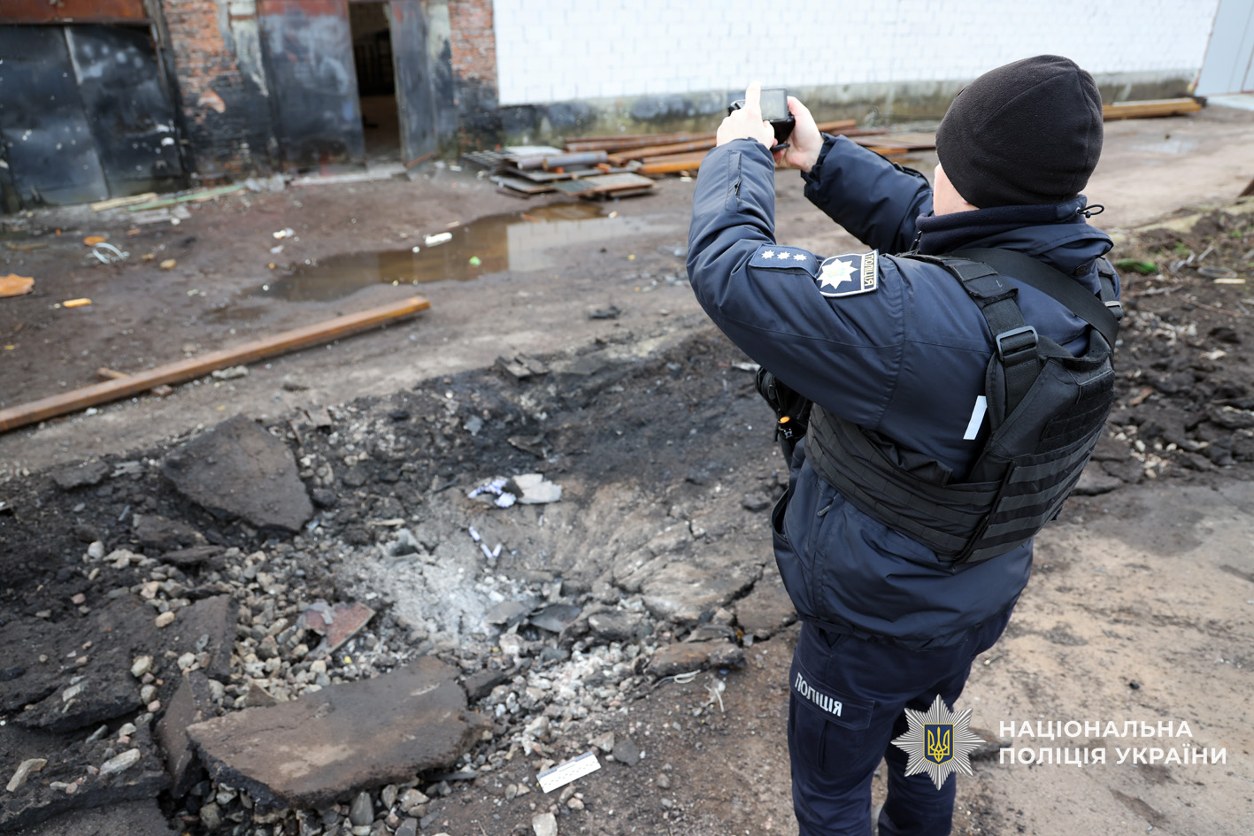 Поліцейські фіксують наслідки атаки та збирають докази чергового воєнного злочину окупантів.