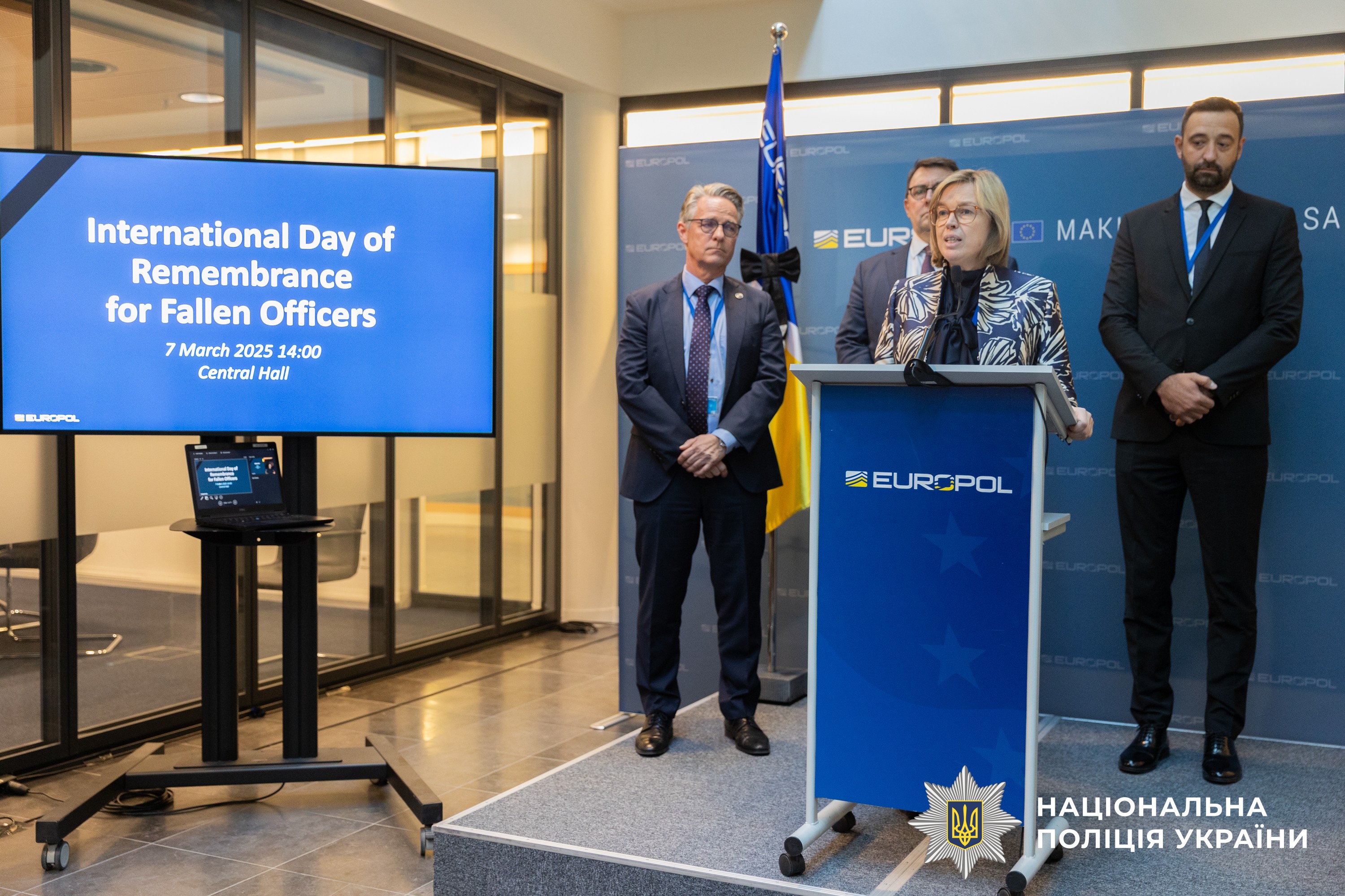 У п'ятницю, 7 березня, у Штаб-квартирі Європолу в м. Гаага, Нідерланди, відбулись заходи із відзначення Міжнародного дня вшанування пам'яті загиблих співробітників поліції – чоловіків і жінок, які принесли найвищу жертву при виконанні службових обов'язків.