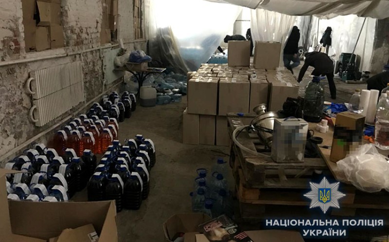 Діяльність підпільного алкогольного цеху припинили працівники Управління захисту економіки в Харківській області Нацполіції та Харківської місцевої прокуратури. Під час проведення процесуальних заходів було встановлено не тільки місце знаходження підпільного виробництва, а також і точки збуту фальсифікату.