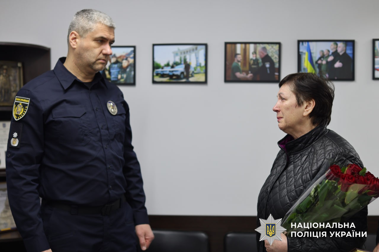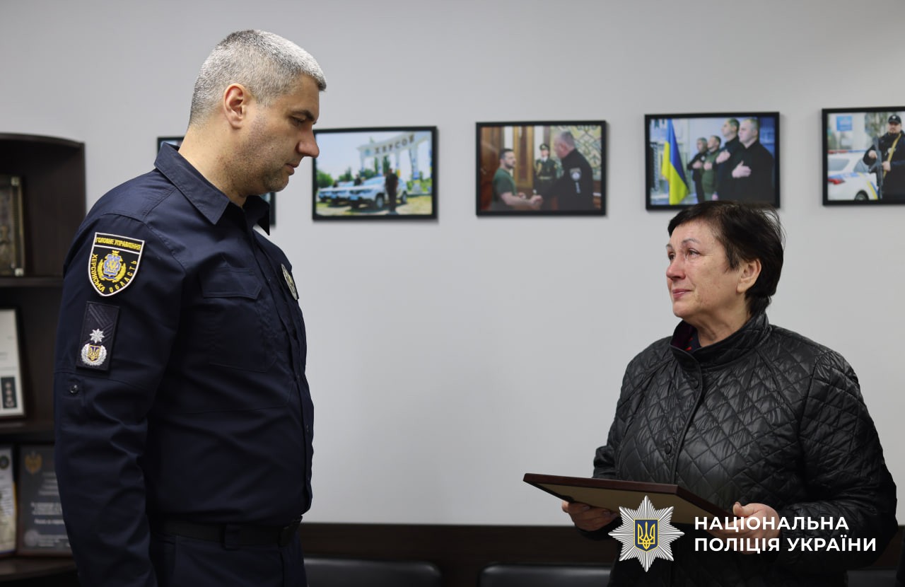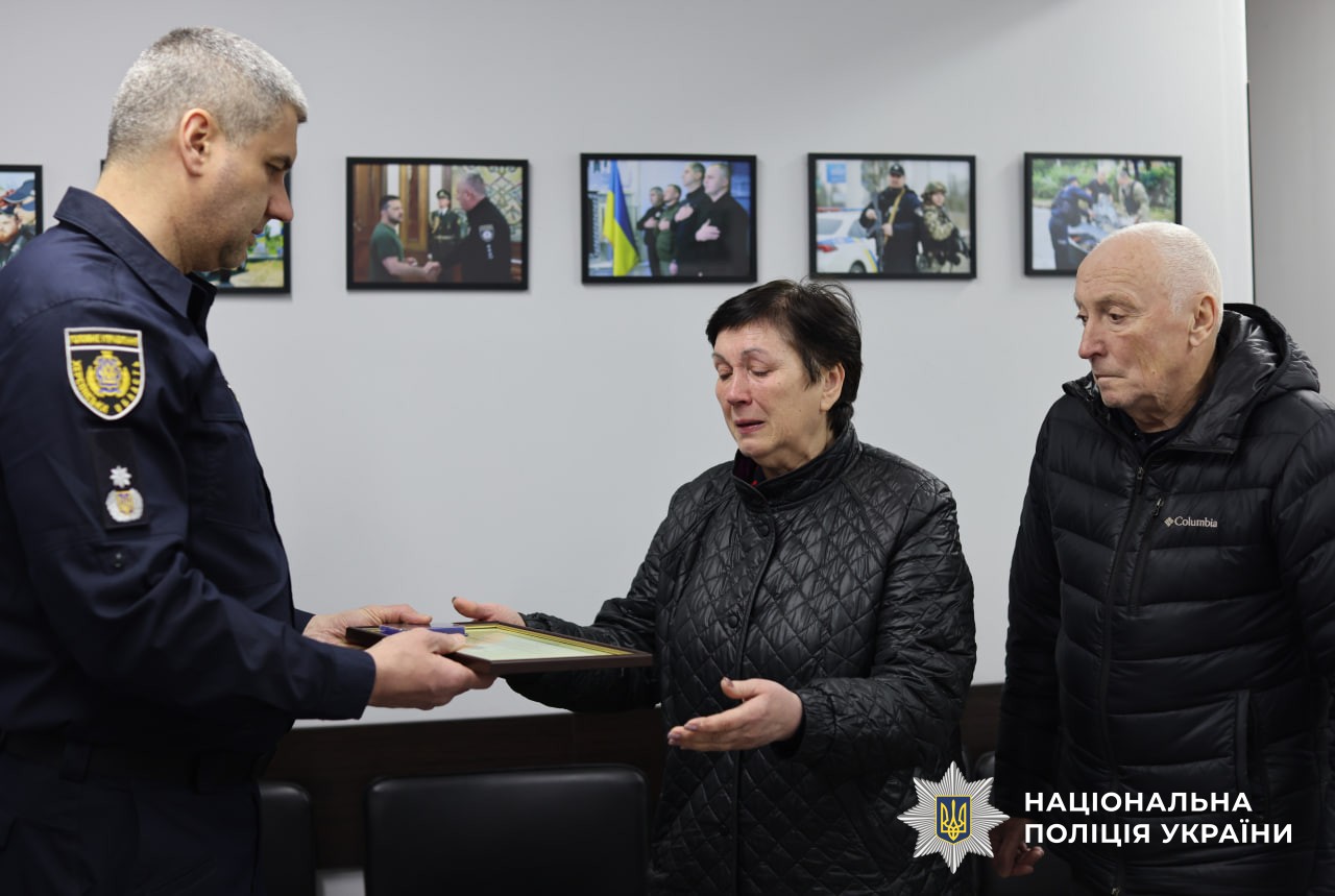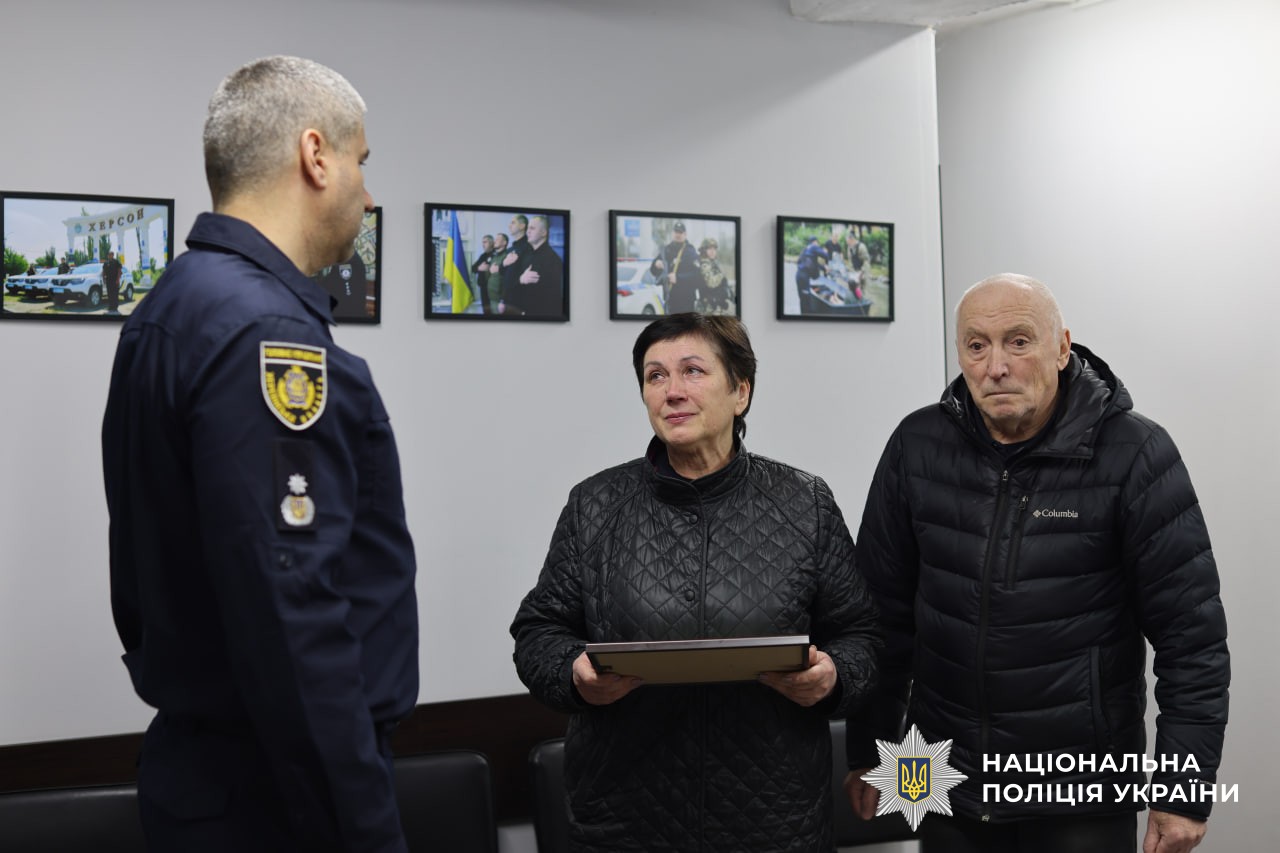 Нагороду батькам передали керівник поліції Херсонщини Роман Козьяков разом зі своїм заступником Сергієм Котигою та начальником Херсонського районного управління поліції Олександром Рогожиним. Вони подякували батькам за сина, підтримали родину та висловили щирі співчуття.