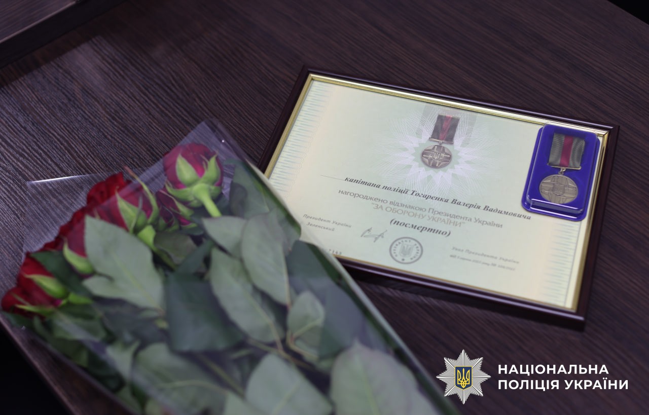 Родині загиблого херсонського поліцейського Валерія Тогаренка вручили державну нагороду – відзнаку Президента України «За оборону України» (посмертно).