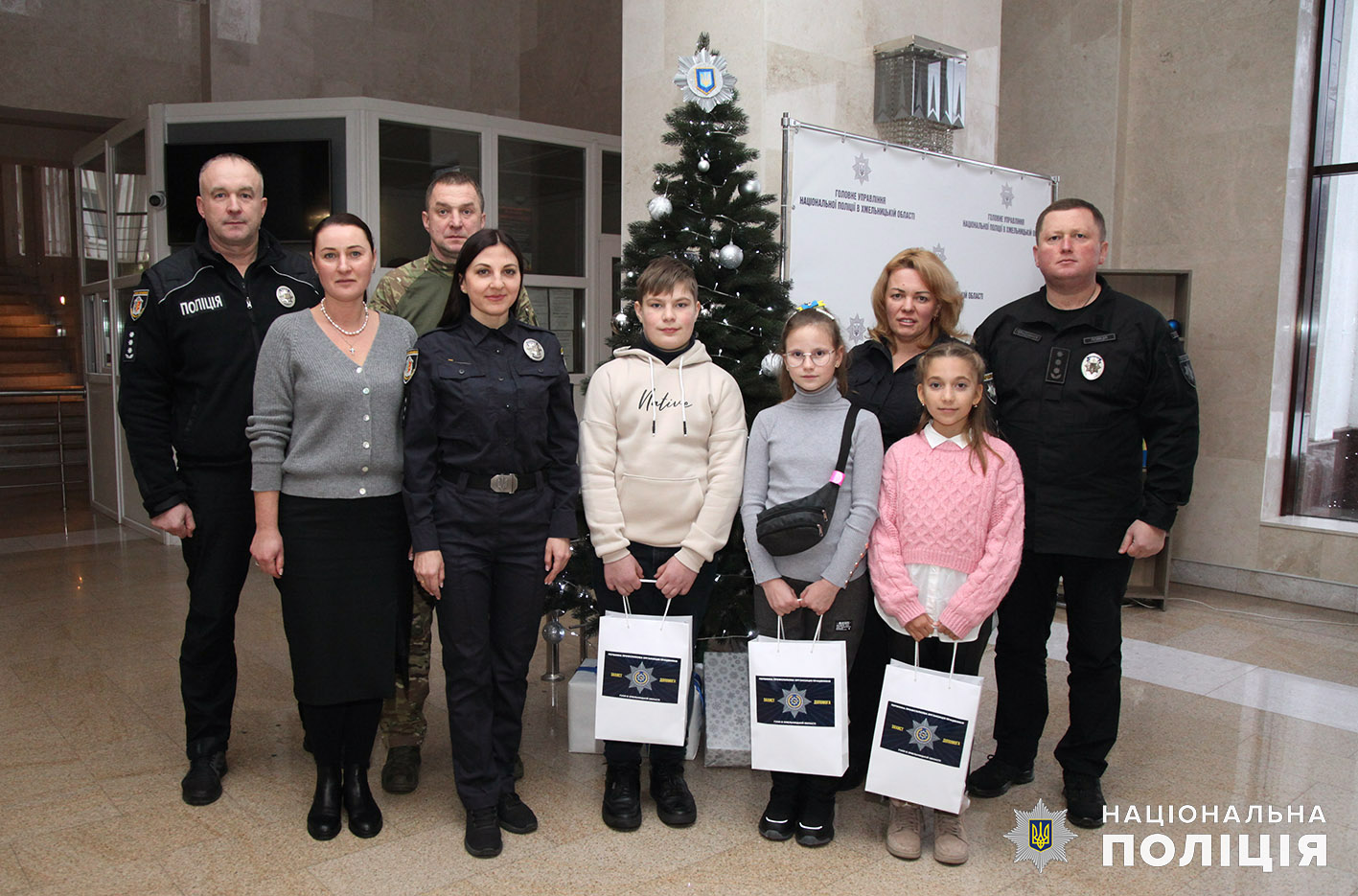 Сьогодні, у День Святого Миколая, до Головного управління Нацполіції в Хмельницькій області завітали діти загиблих і поранених у війні з агресором правоохоронців. Вони отримали від керівництва поліції області приємні та корисні подарунки, а потім спільно прикрасили святкову ялинку янголами Перемоги.