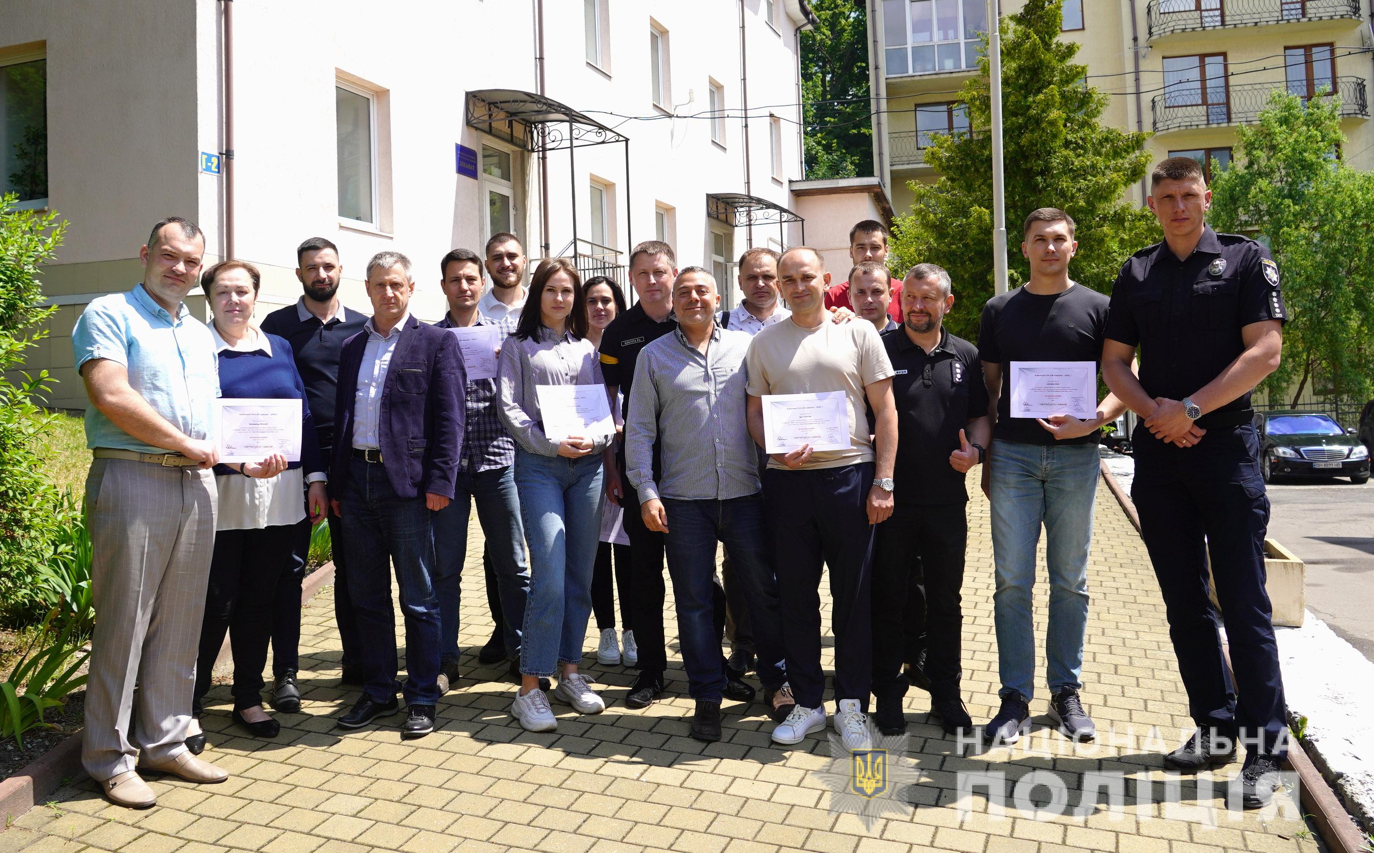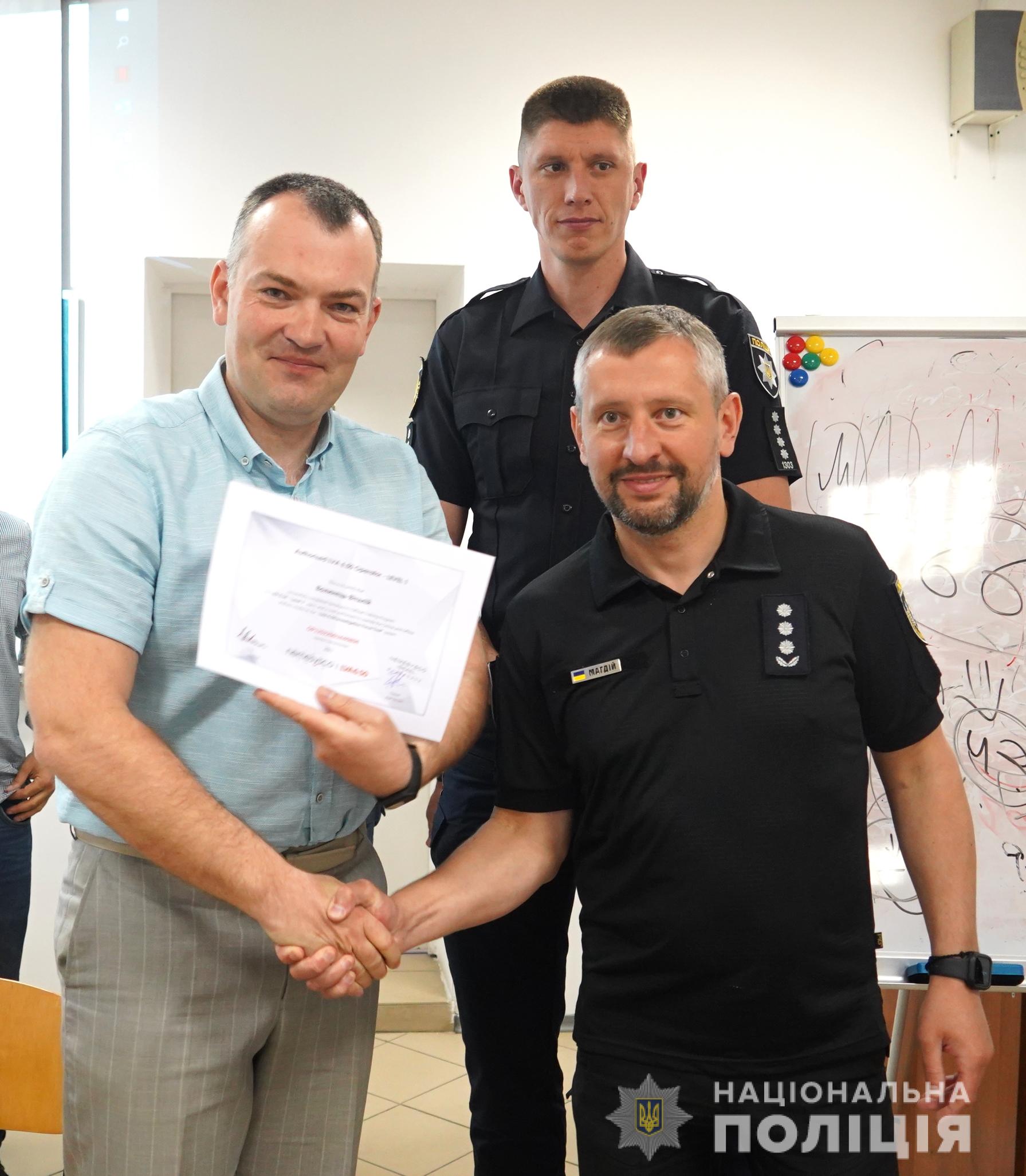 Привітали правоохоронців з успішним проходженням навчань та вручили їм сертифікати заступник начальника Департаменту інформаційно-аналітичної підтримки Нацполіції Сергій Магдій, заступник начальника поліції Львівської області Дмитро Міхалець, ректор Львівського державного університету внутрішніх справ Роман Благута.