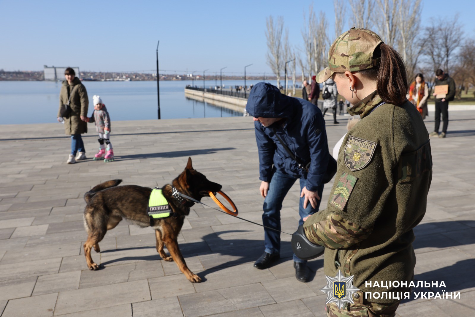На благодійному заході молодший інспектор кінологічного центру обласного главку поліції розповіла містянам як розуміти поведінку собак, а її чотирилапий помічник німецька вівчарка Еджер продемонстрували гостям свої вміння. Присутні побачили, як відбувається підготовка службових собак, дізналися більше про особливості їх навчання та щоденну роботу поруч із правоохоронцями.