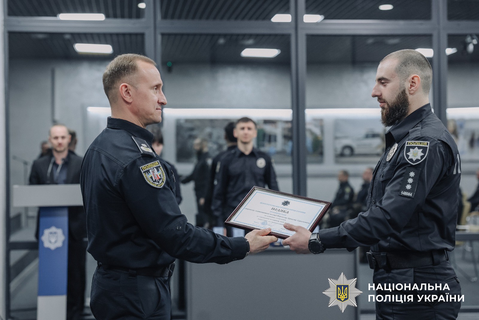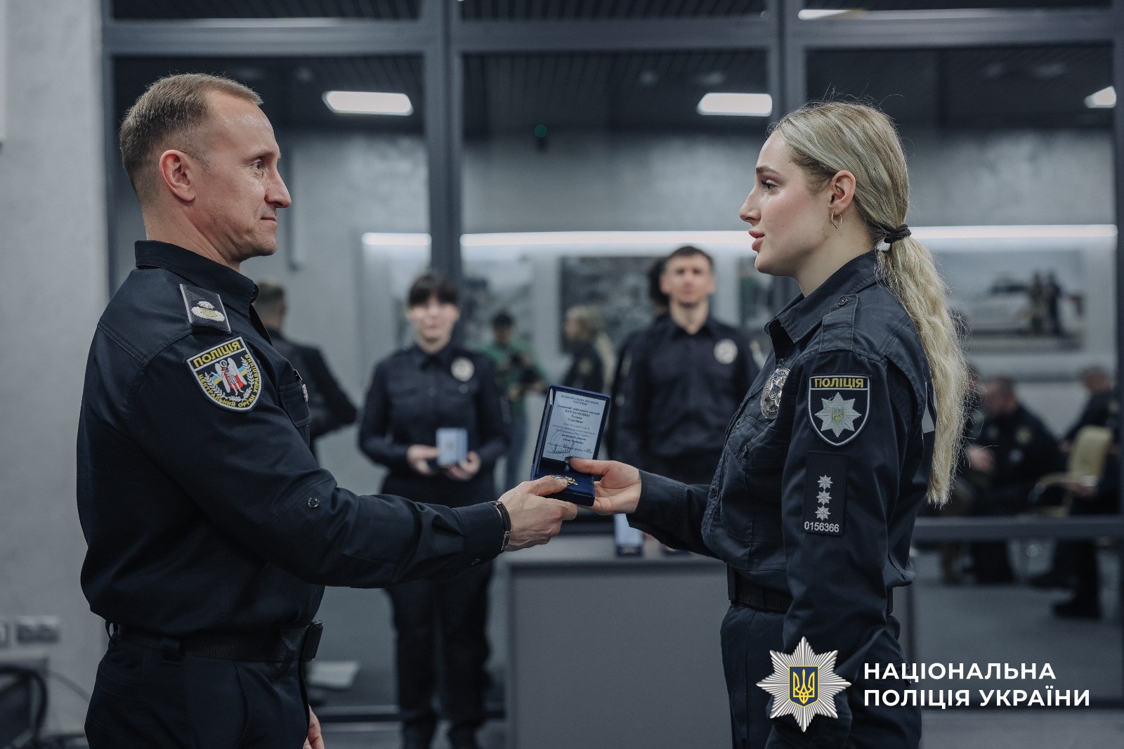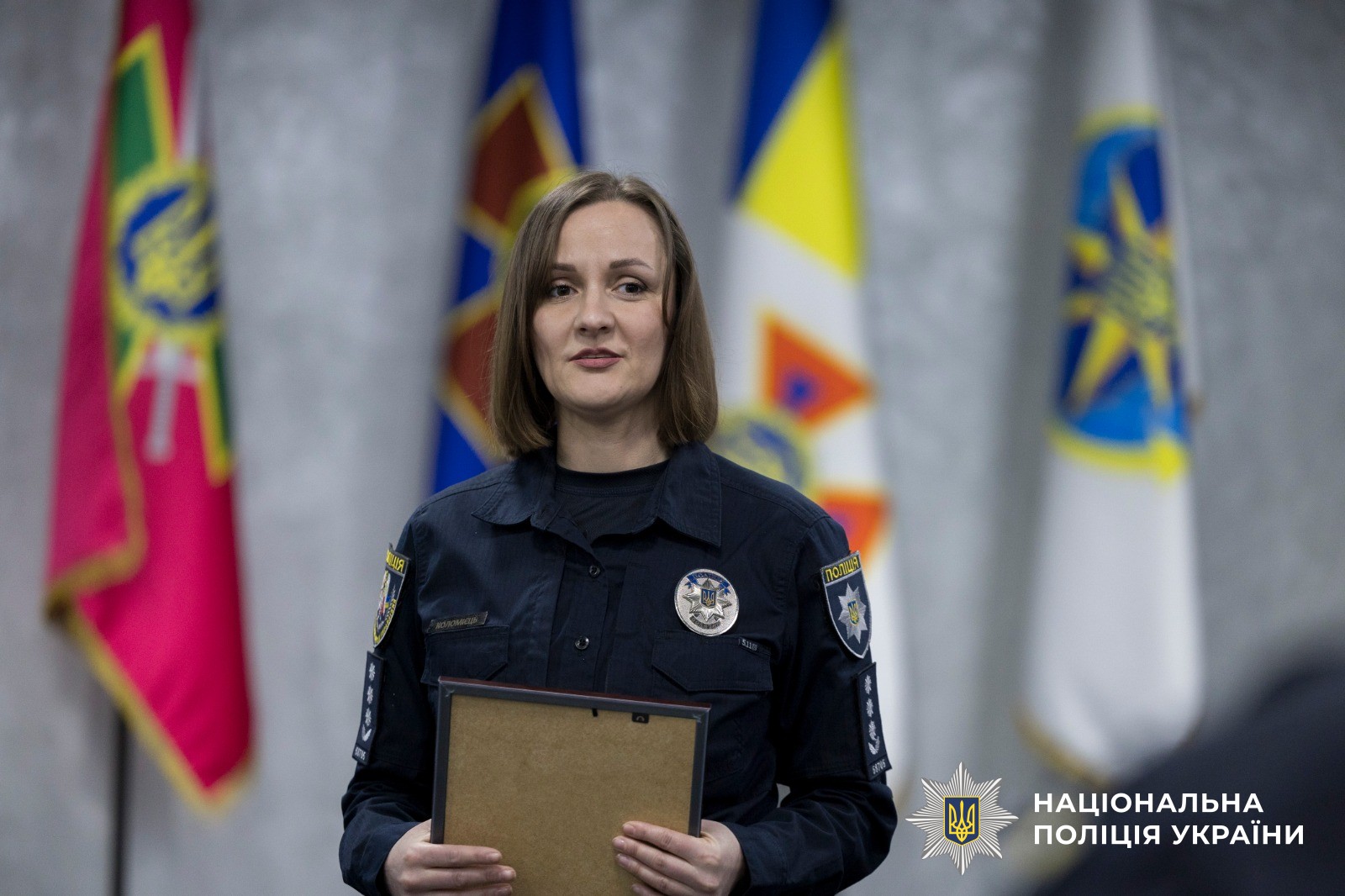 Серед нагороджених – молодший інспектор-кінолог кінологічного центру ГУНП у місті Києві Леонід Маріяшко та його чотирилапа помічниця Орнела. Сьогодні вона отримала свою першу нагороду за пошук наркотичних речовин і прекурсорів. Разом із Орнелою Леонід виїжджає на обшуки, пов’язані з виявленням наркотичних речовин. Найбільше її досягнення – 73 кілограми наркотичних речовин (амфетаміну та канабісу). Цього року вони відпрацювали понад 35 викликів.