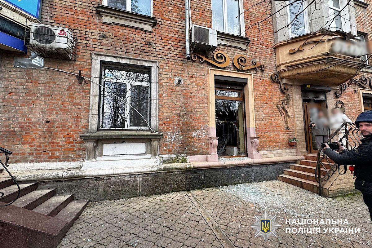 Після 12-ї ворог знову вдарив по Нікополю ударним дроном. Поранення отримав 47-річний чоловік - йому надали медичну допомогу. Наразі слідчі зафіксували пошкодження багатоповерхівки, перукарні та магазину. Тривають слідчі дії.