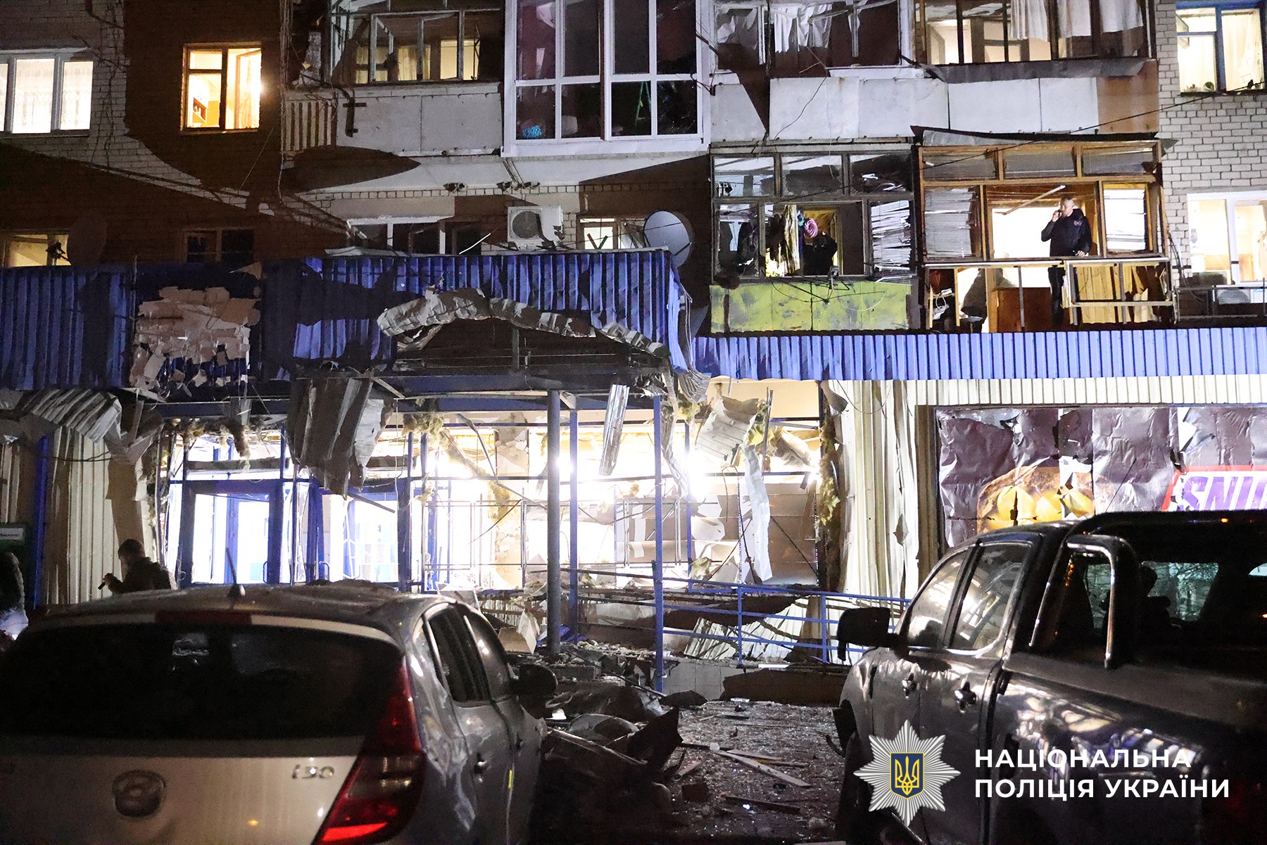 Окупанти скерували дрон у житлову багатоповерхівку. Удар прийшовся безпосередньо по входу до магазину, розташованого на першому поверсі. Поранення різного ступеня тяжкості отримали пʼятеро громадян.