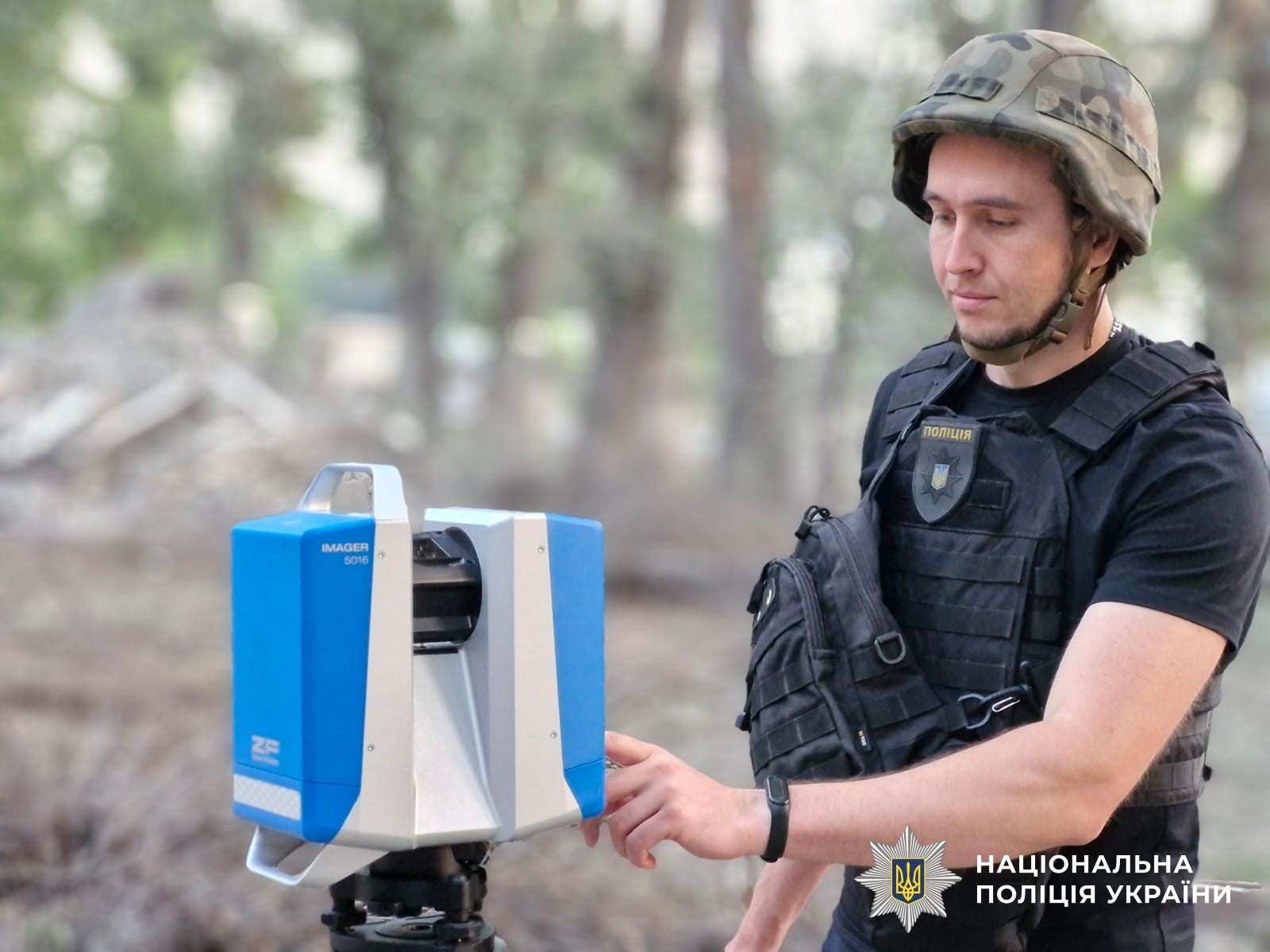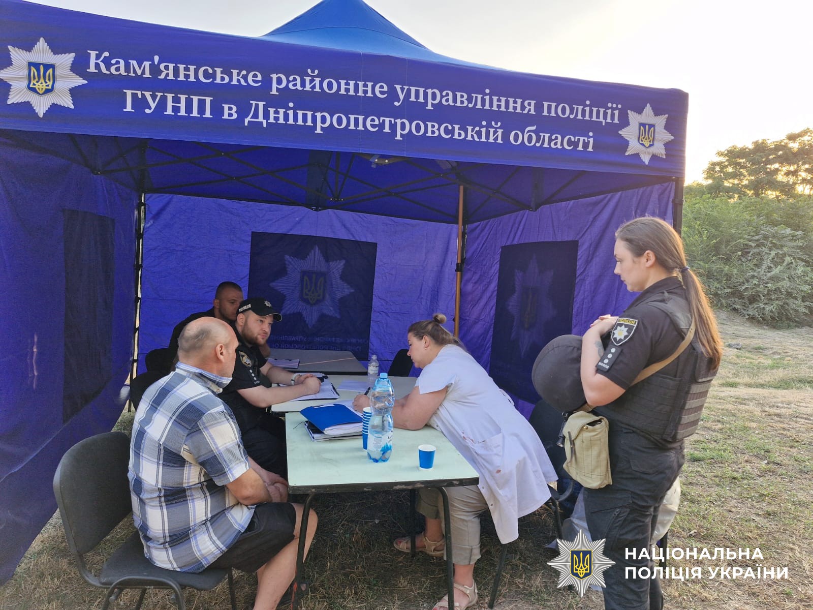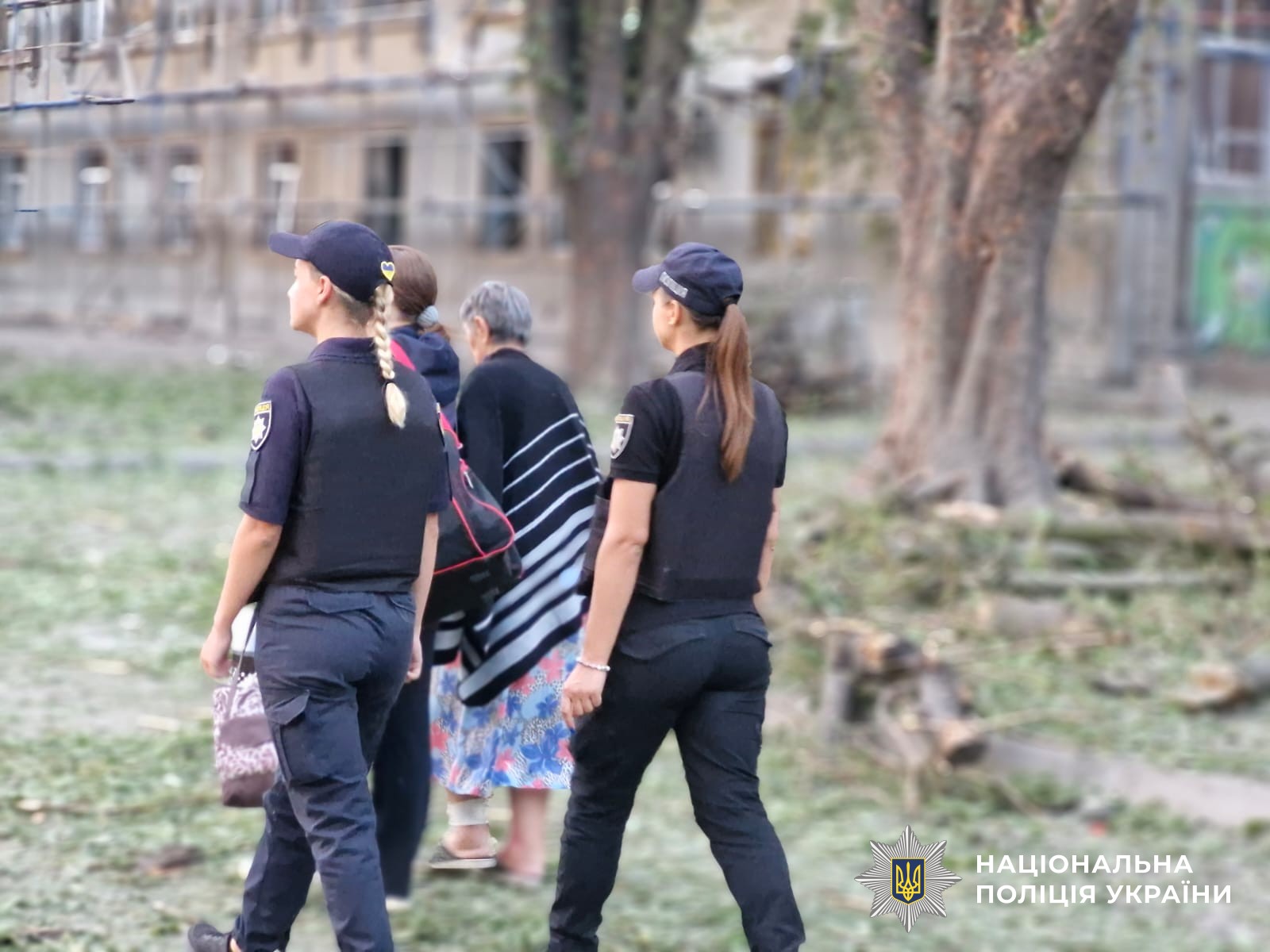 Поліцейські забезпечують охорону громадського порядку, надають допомогу людям та фіксують наслідки обстрілу.