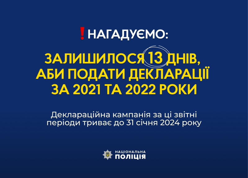 Увага! Деклараційна кампанія за 2021 та 2022 роки триває до 31 січня 2024 року