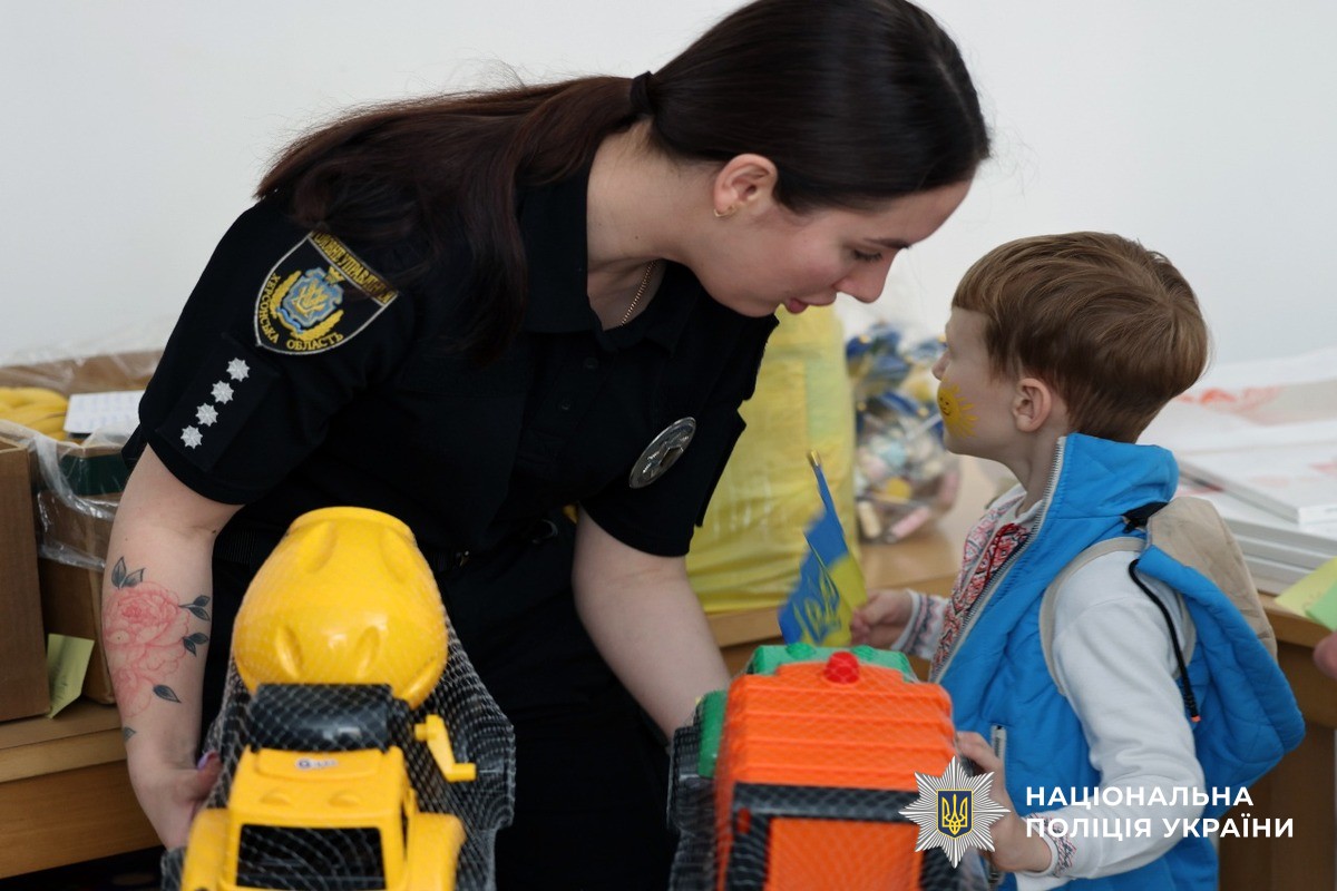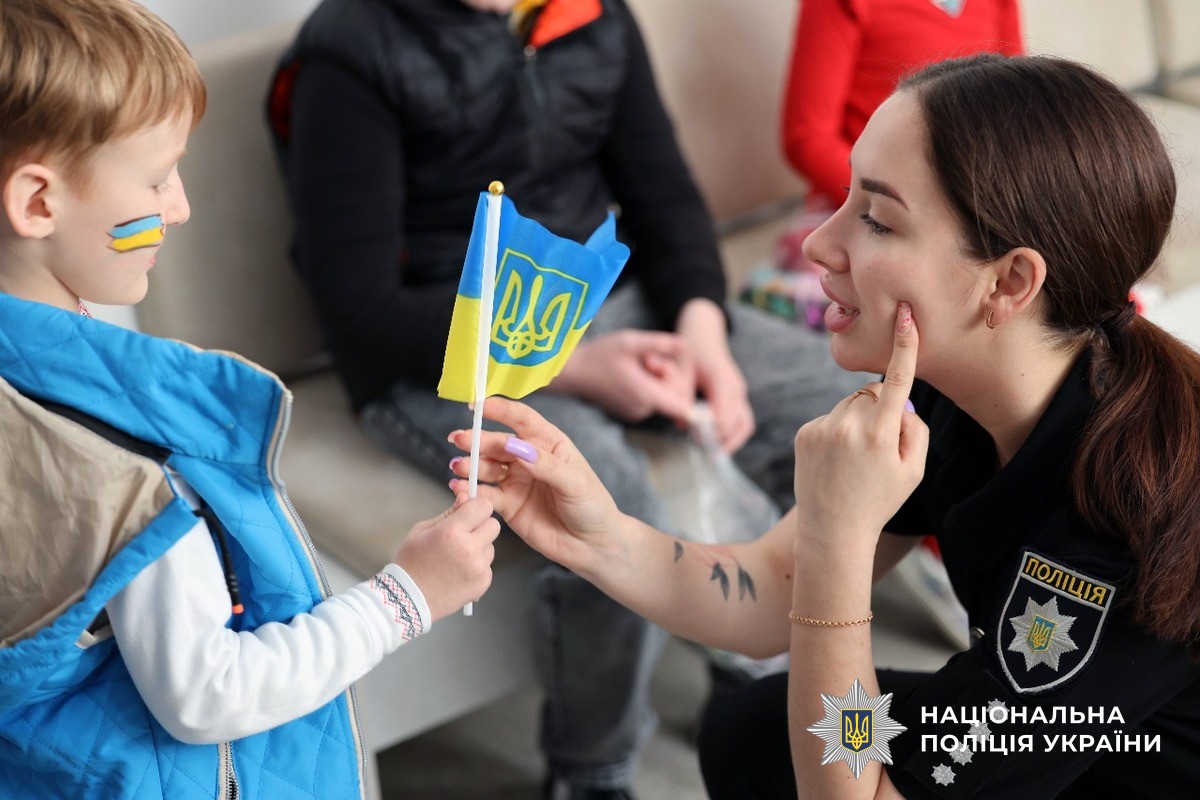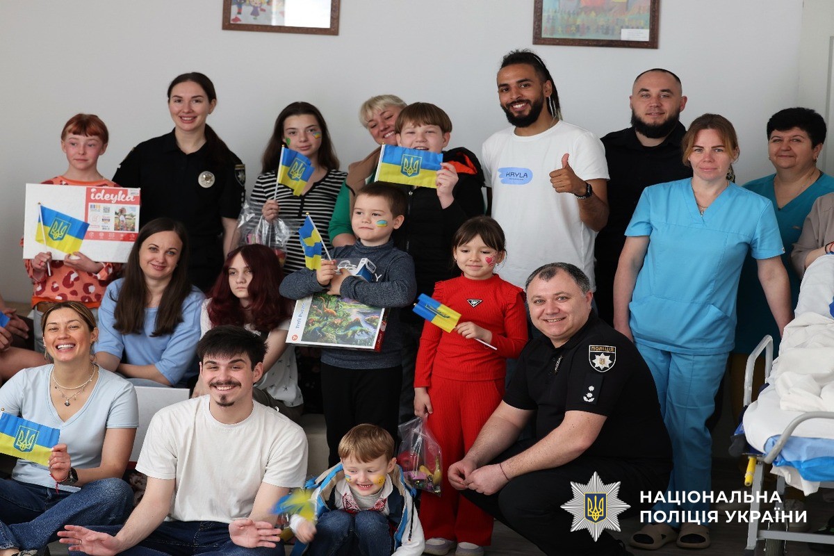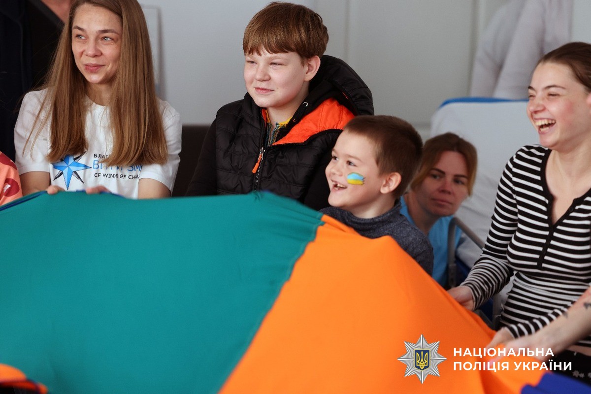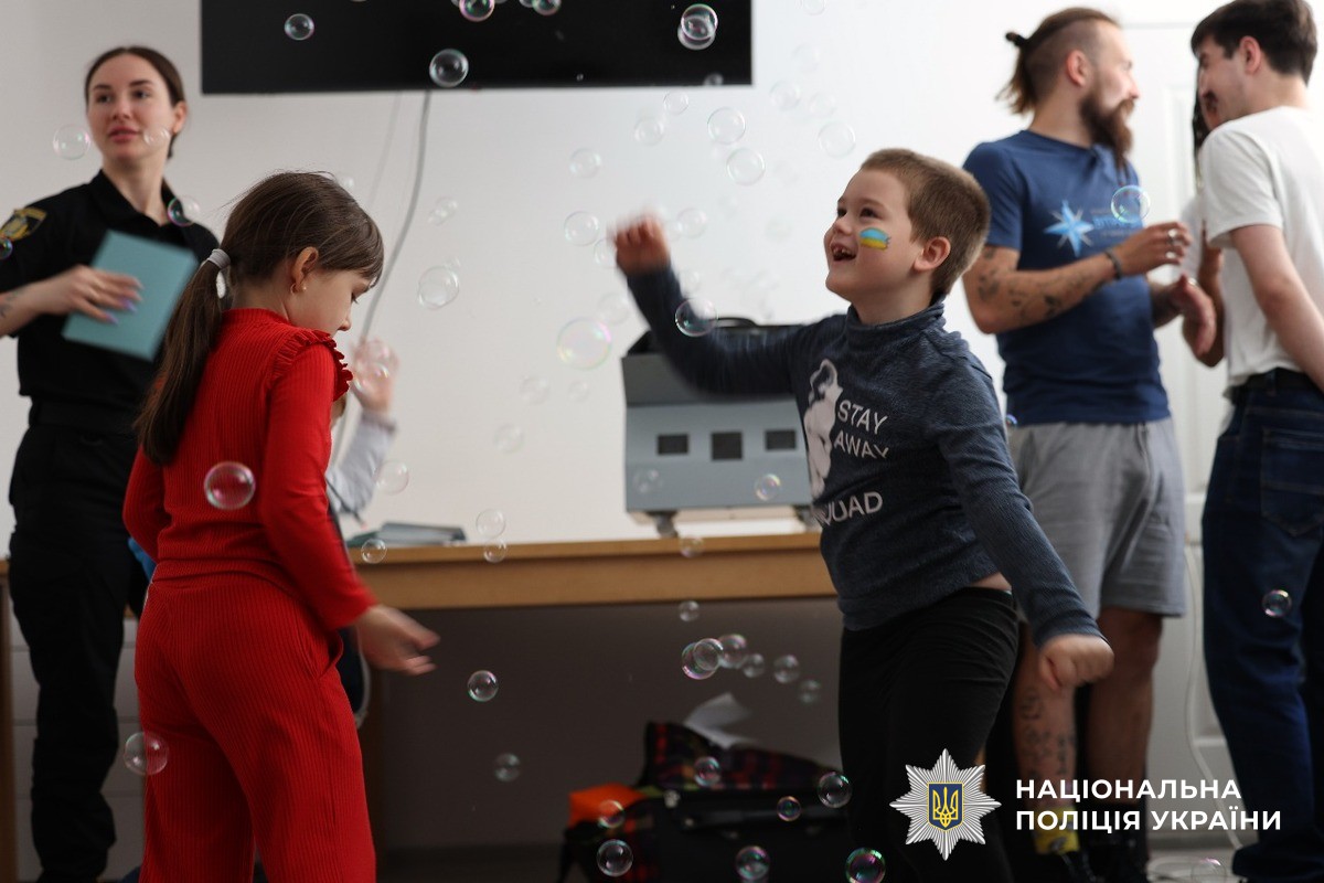 Ювенали з волонтерами підготували для хлопчиків і дівчат різні ігри, провели пізнавальні конкурси та вікторини. Малеча мала можливість хоч на деякий час забути про рани та хвороби, трішки відволіктися від сірих воєнних буднів, погратися та послухати цікаві історії від поліцейських. Діти були задоволені святом та увагою від гостей, адже щирі посмішки не сходили з дитячих обличь.