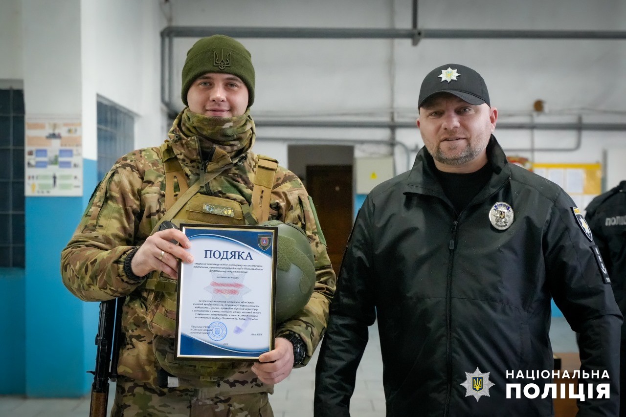 «Дякую, що долучаєтеся до цієї важкої роботи, допомагаєте протистояти ворогу і наближаєте його неминуче покарання. Бережіть себе, підставляйте плече один одному і завжди пам’ятайте, що вас чекають вдома», - сказав поліцейським заступник начальника ГУНП в Одеській області Денис Захарченко.