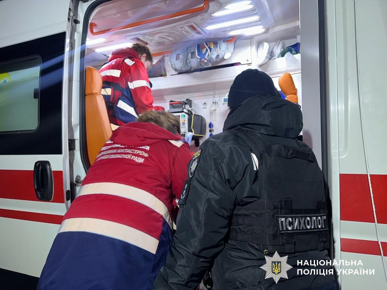 Поліцейські документують наслідки терору росії: збирають докази, опитують очевидців, надають психологічну допомогу, забезпечують охорону правопорядку. До виконання завдань залучено 45 співробітників поліції.