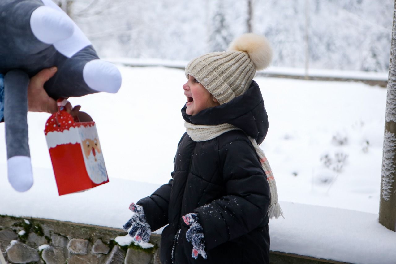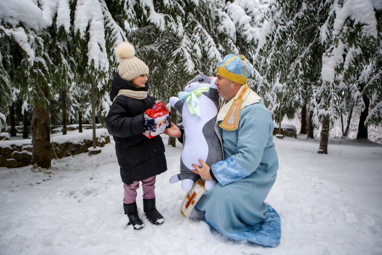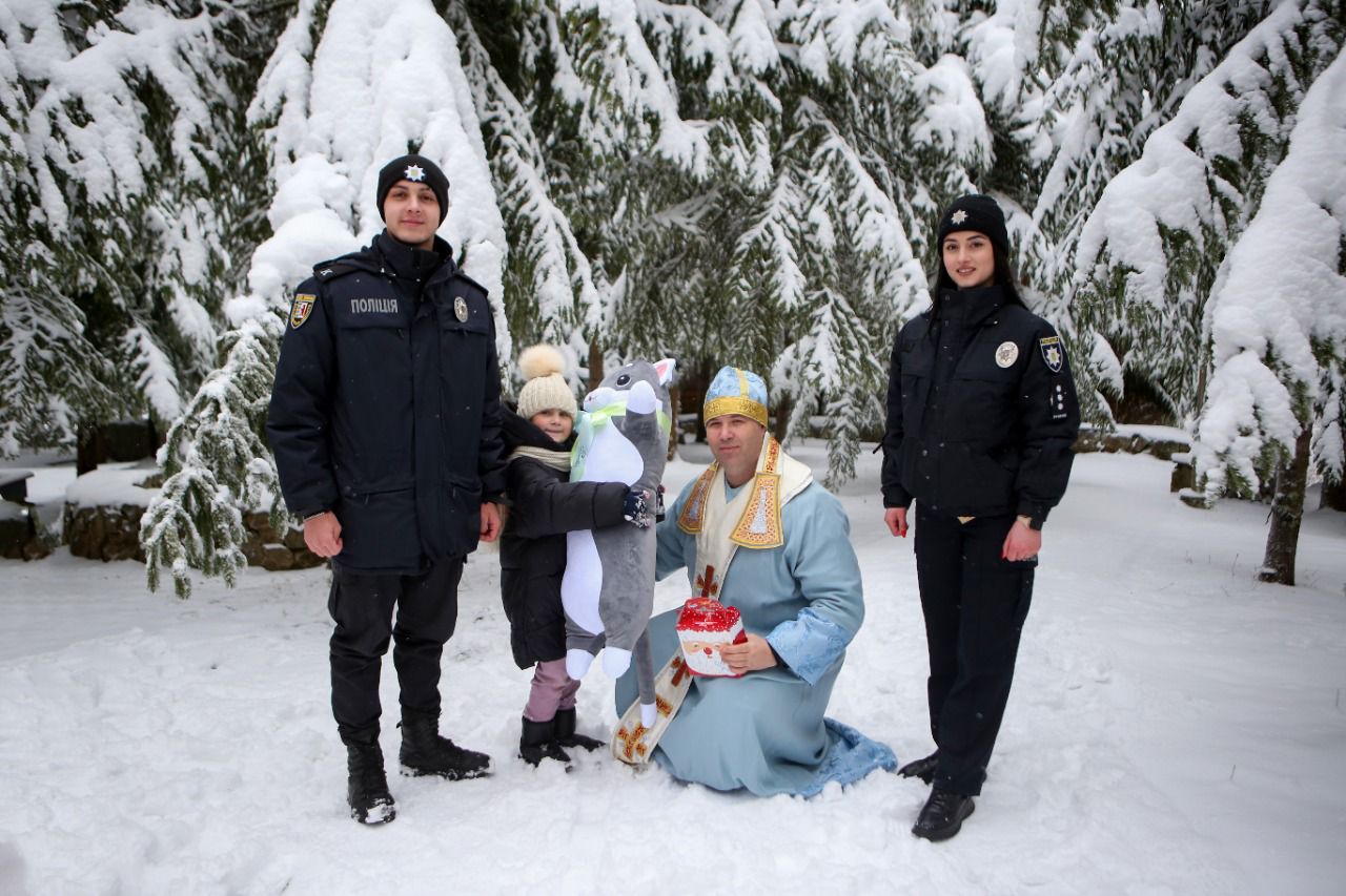 Миколай ніс для неї спогад про домашнього улюбленця. Проте за звичною адресою дівчинку застати не вдалося. Нову домівку Поліни на Закарпатті Миколаєві допомогли розшукати ювенальні поліцейські Міжгір’я: на службовому автомобілі, об’їхавши засніжені вулиці містечка, поліцейські Юлія та Микола привезли Миколая з подарунками до Полінки.