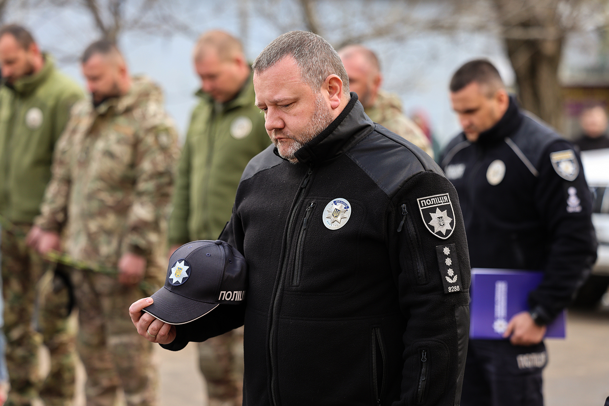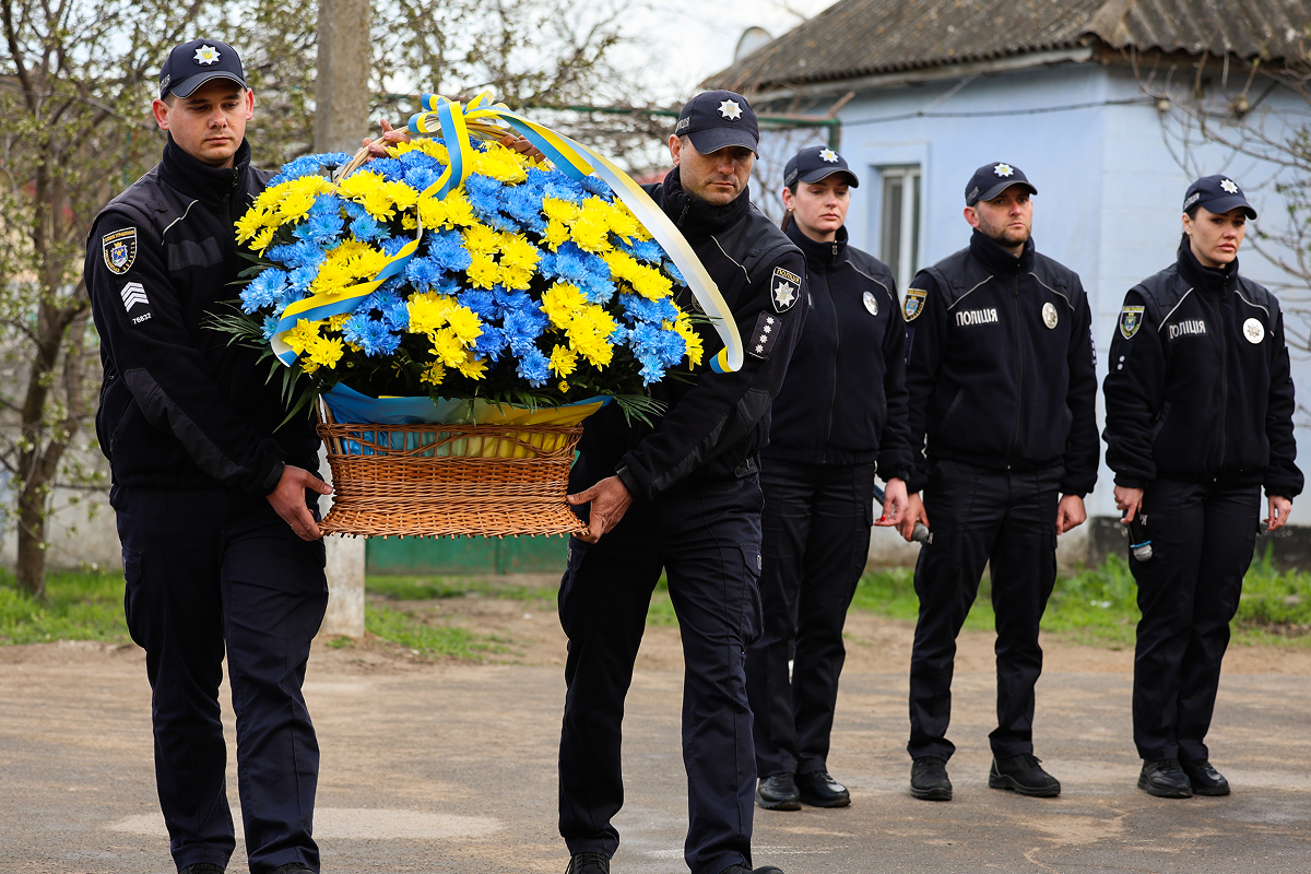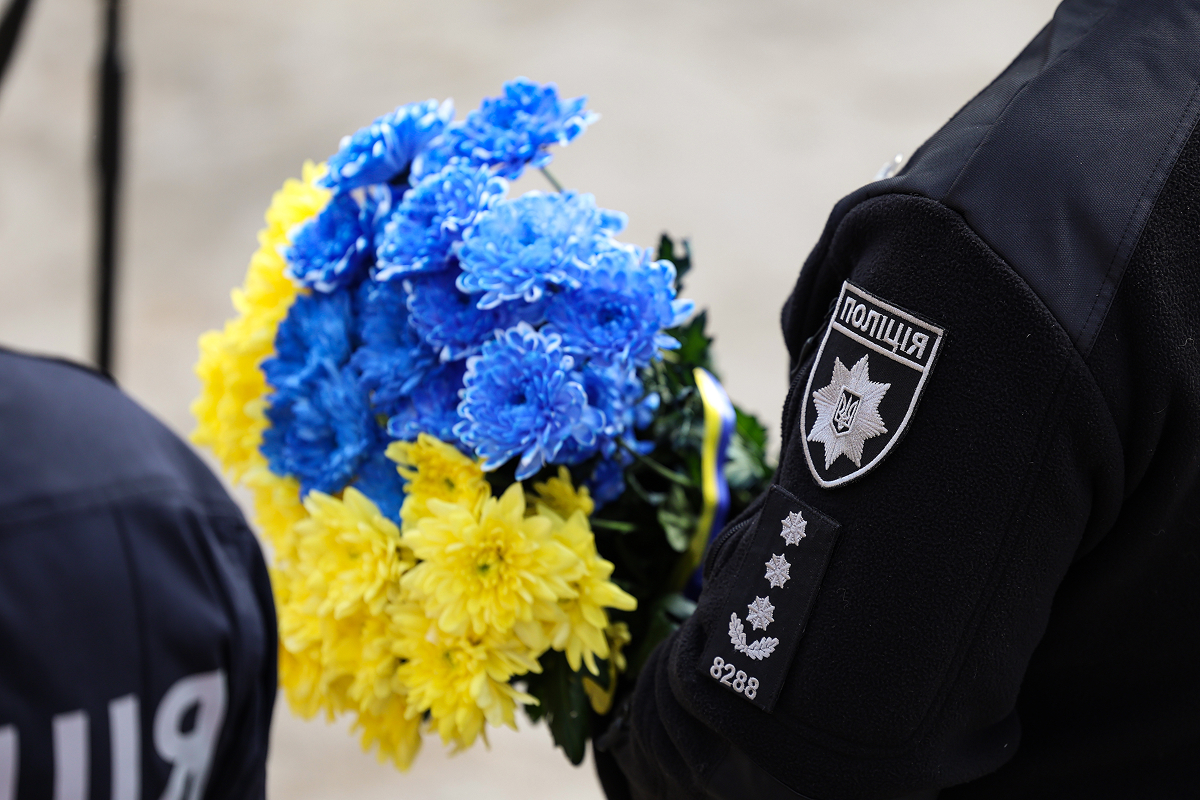 Присутні, схиливши голови у хвилині мовчання, віддали данину шани світлій пам’яті поліцейського-захисника та всіх українських воїнів, які загинули у війні з російськими загарбниками.