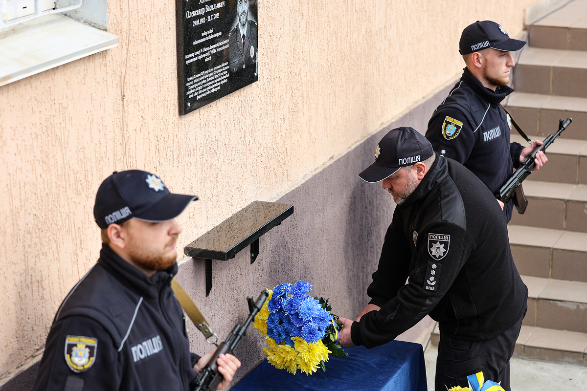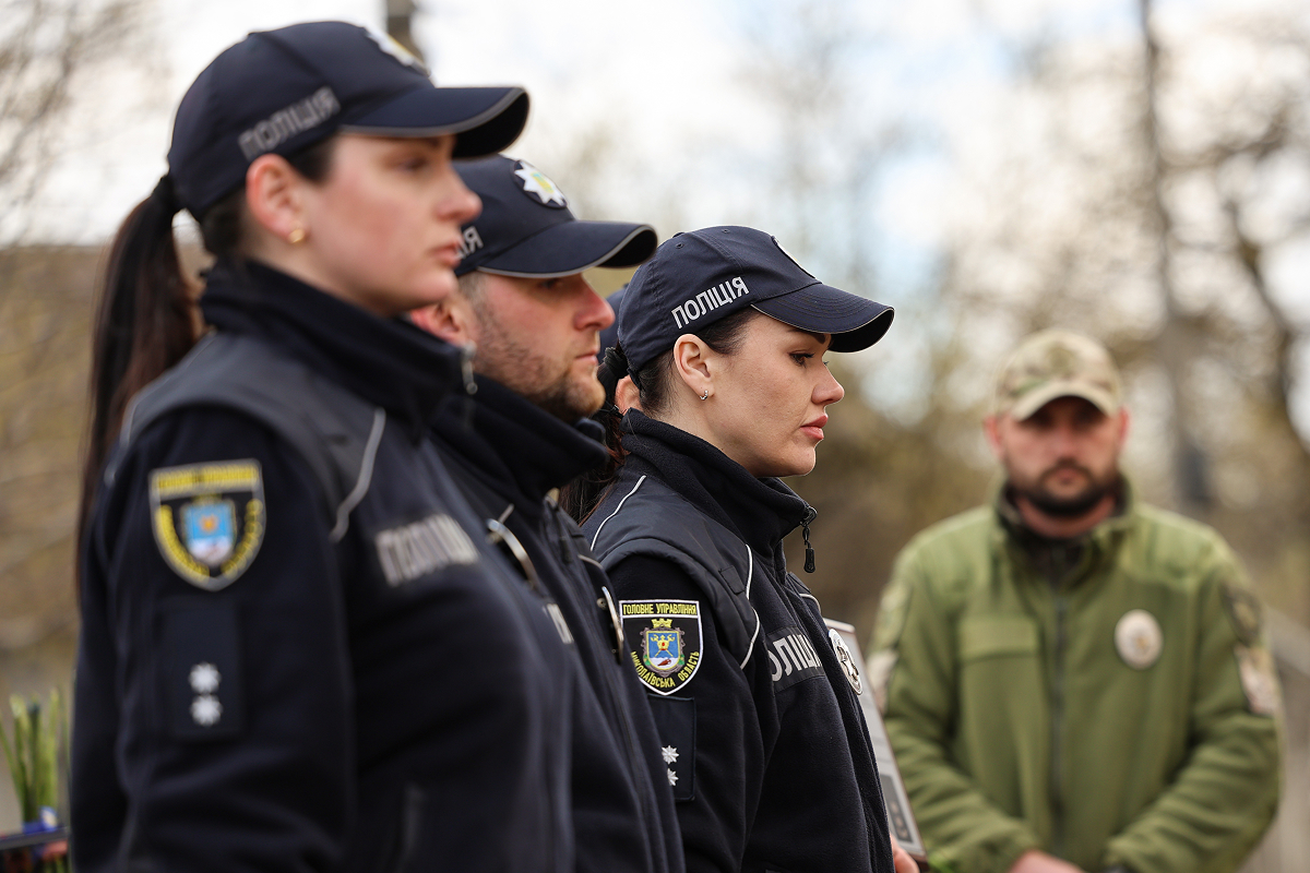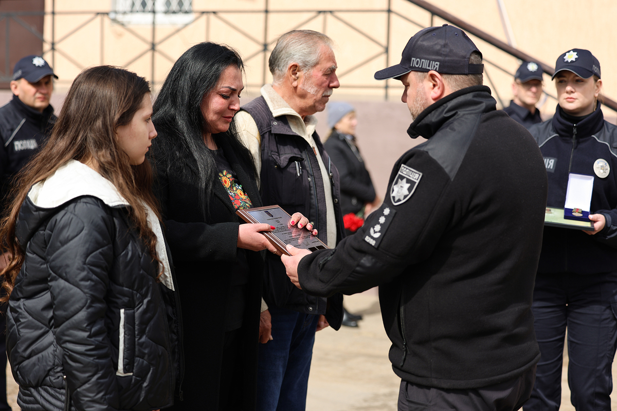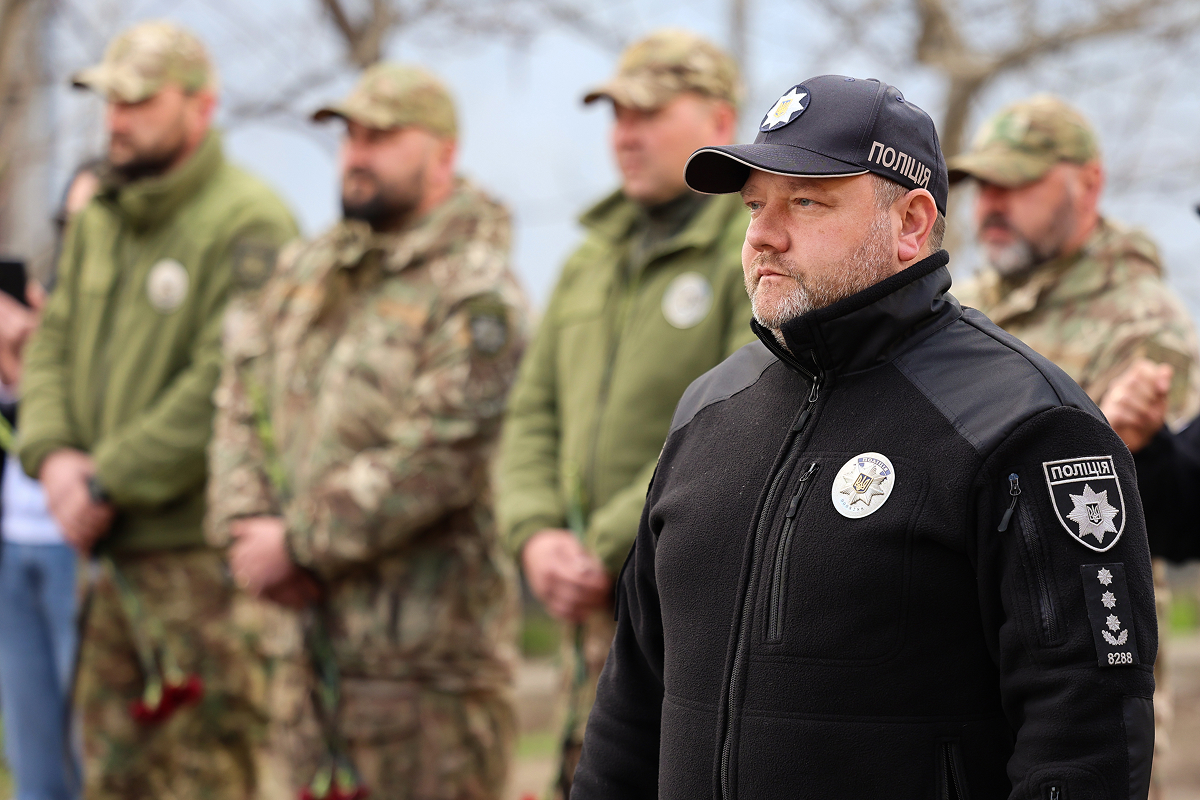 Присутні, схиливши голови у хвилині мовчання, віддали данину шани світлій пам’яті поліцейського-захисника та всіх українських воїнів, які загинули у війні з російськими загарбниками.