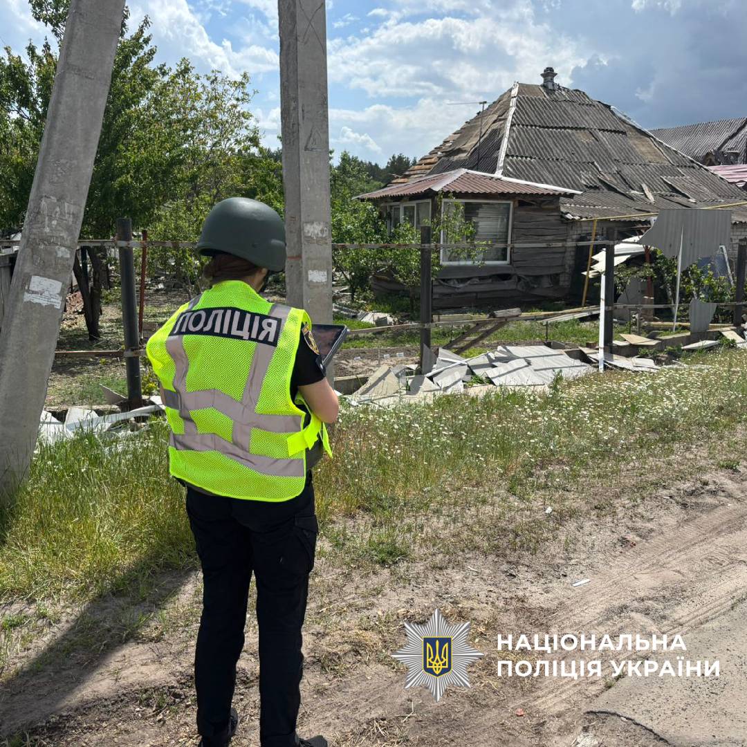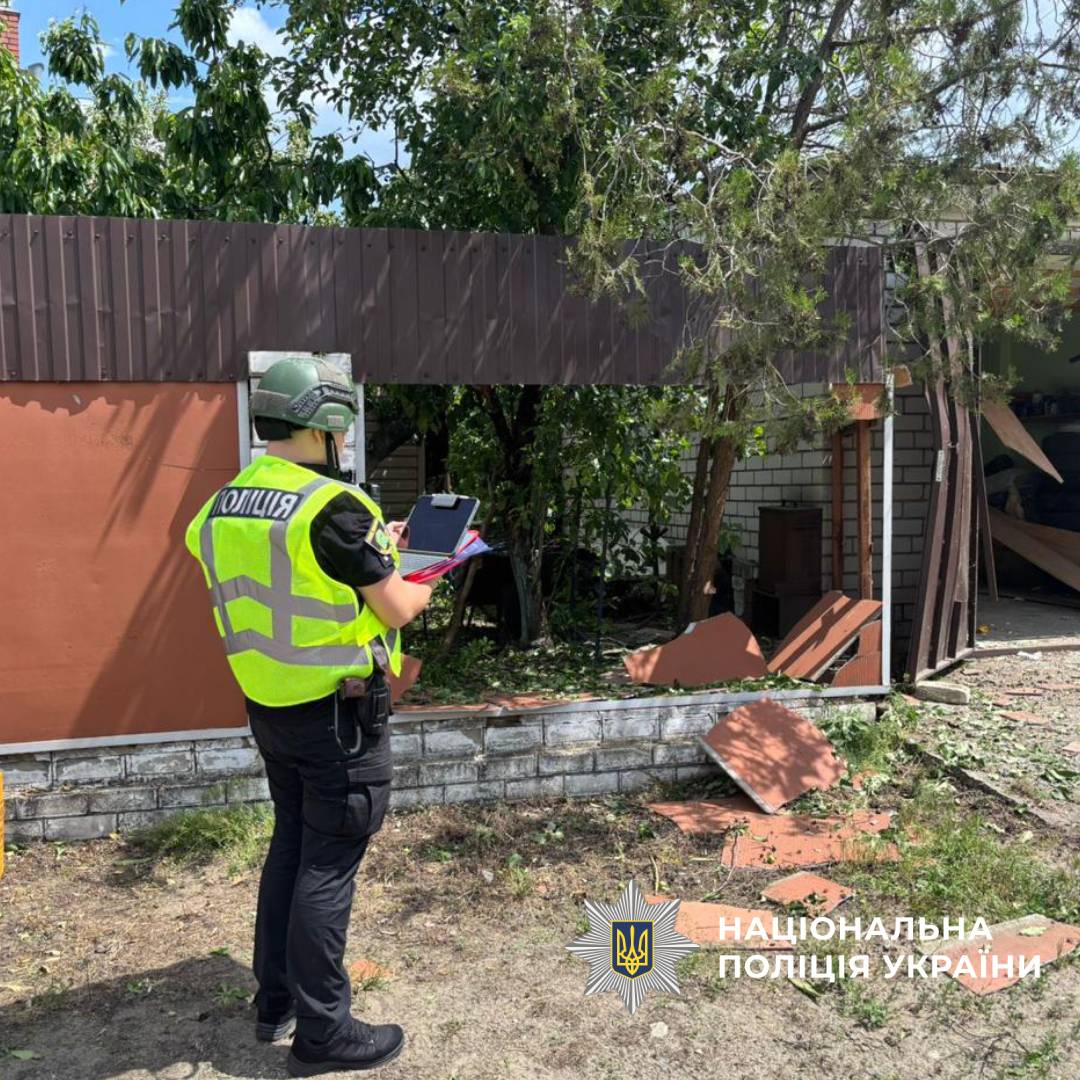 Працівники поліції оглядають місця влучань і документують наслідки обстрілу.