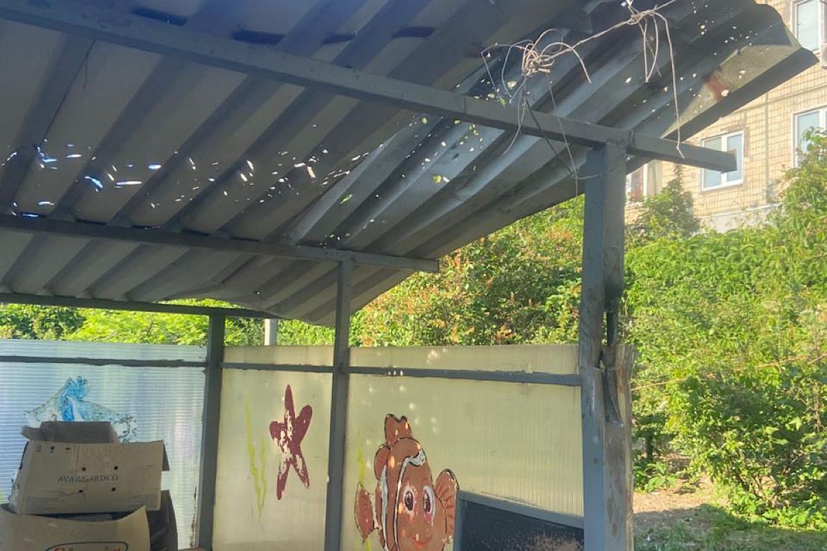Сьогодні, о 05.45 армія рф спрямувала дрон на територію дитячого садочку в Нікополі. Понівечено дах павільйону для прогулянок.