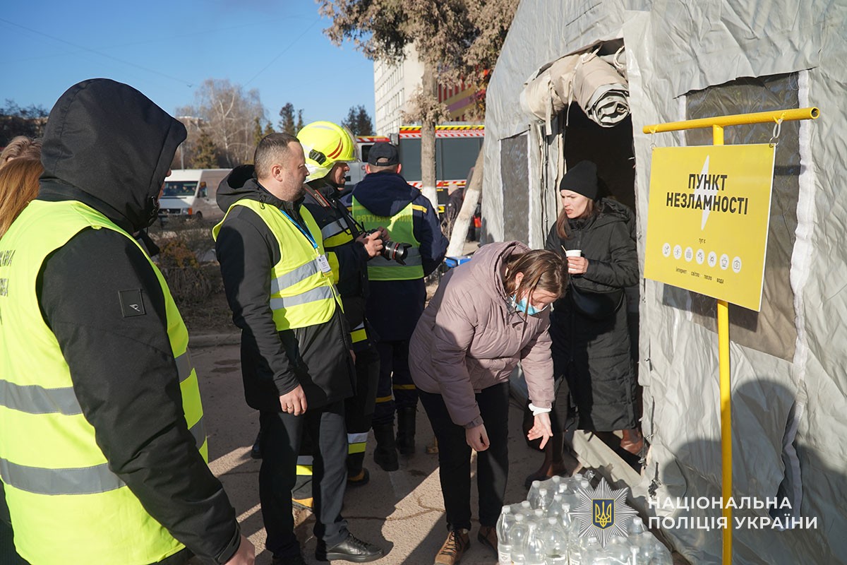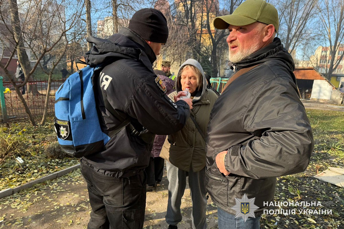 На місцях влучань працюють слідчо-оперативні групи поліції, патрульні, криміналісти, вибухотехніки, співробітники ДСНС, медики. Психологи Нацполіції та інших профільних служб надають постраждалим психологічну допомогу та підтримку.