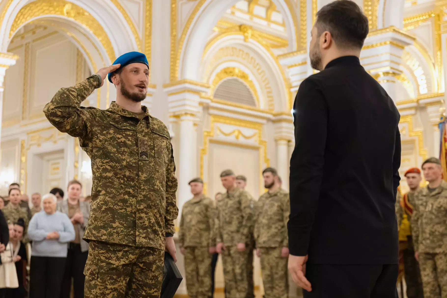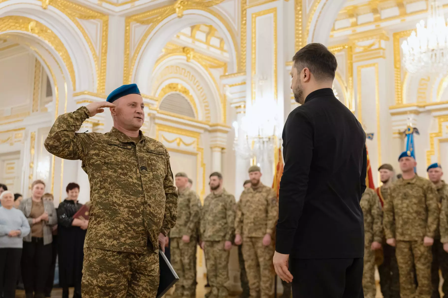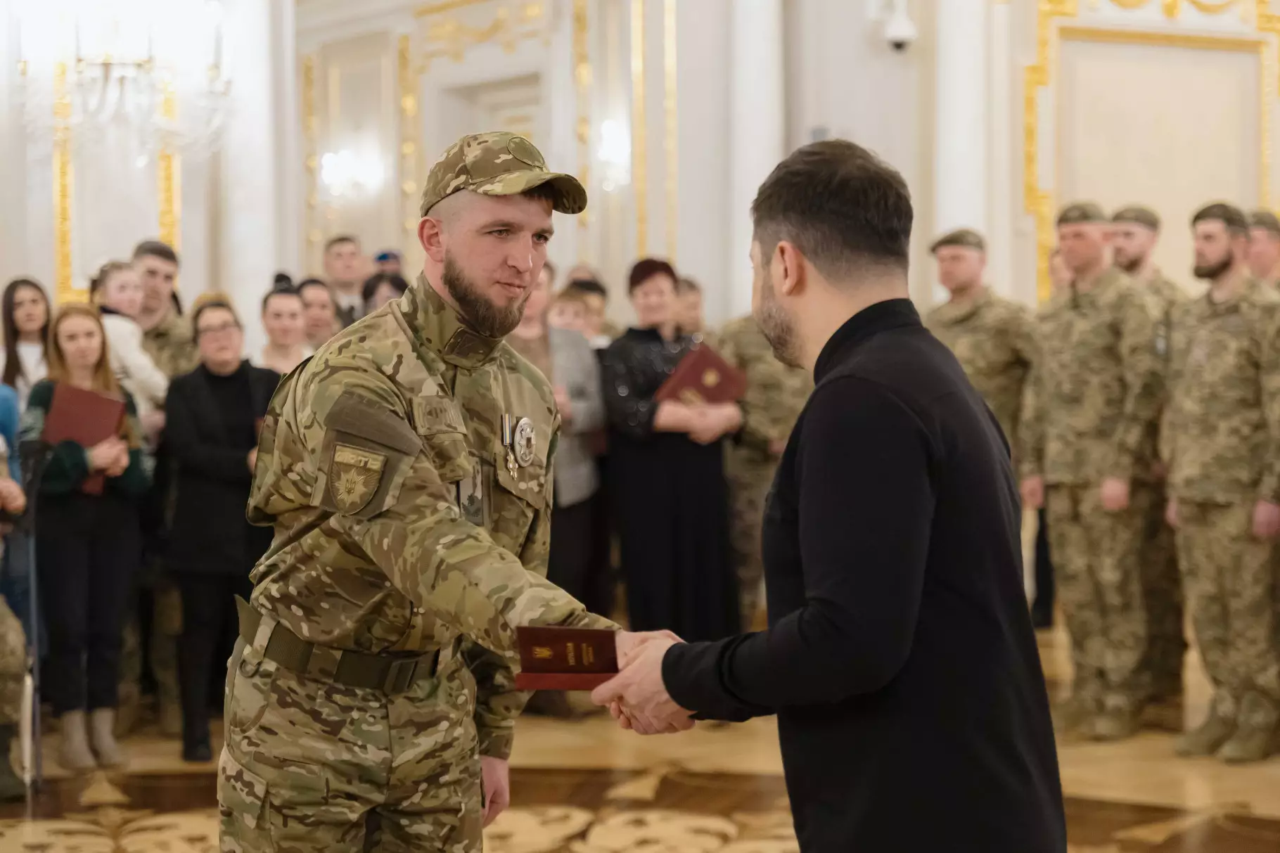 Президент України Володимир Зеленський відзначив орденами «Золота Зірка» Героїв України та передав нагороди рідним загиблих Героїв, вручив українським воїнам відзнаки «Хрест бойових заслуг» та інші високі державні нагороди, а також підрозділам Сил оборони – бойові прапори, стрічки відзнаки «За мужність та відвагу» та стрічки почесних найменувань.