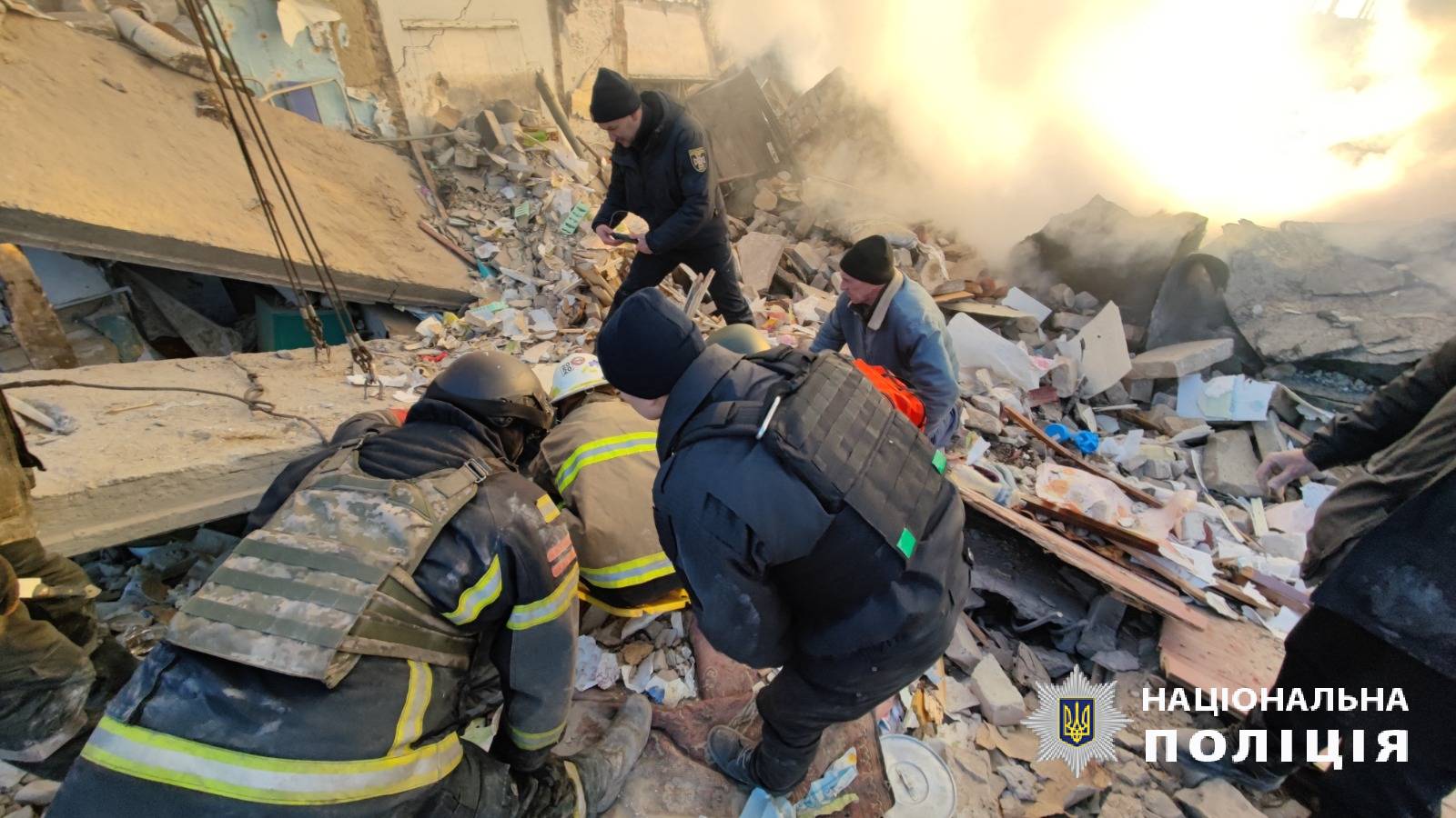 На місцях подій продовжують працювати співробітники слідчо-оперативної групи, вибухотехніки, ДСНС. Вони розбирають завали, проводять огляди та збирають речові докази.